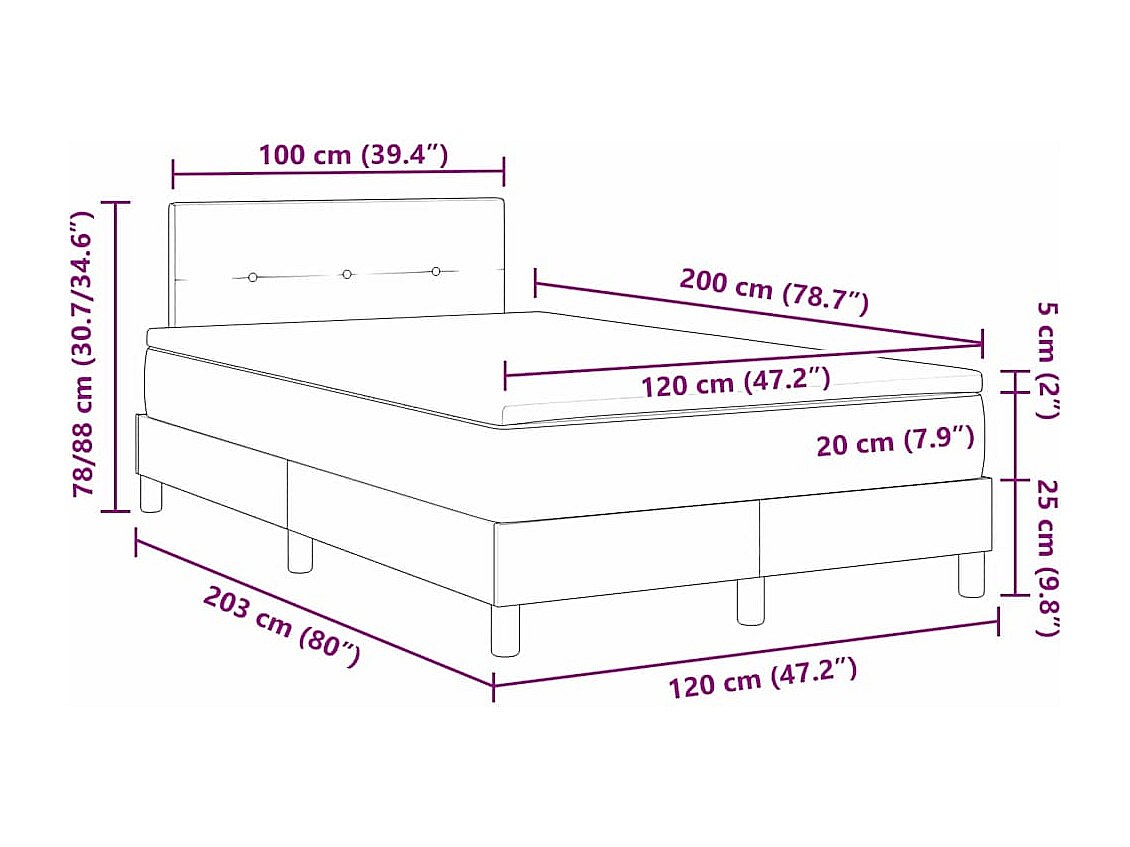 Boxspringbett mit Matratze Schwarz 120 x 200 cm Stoff