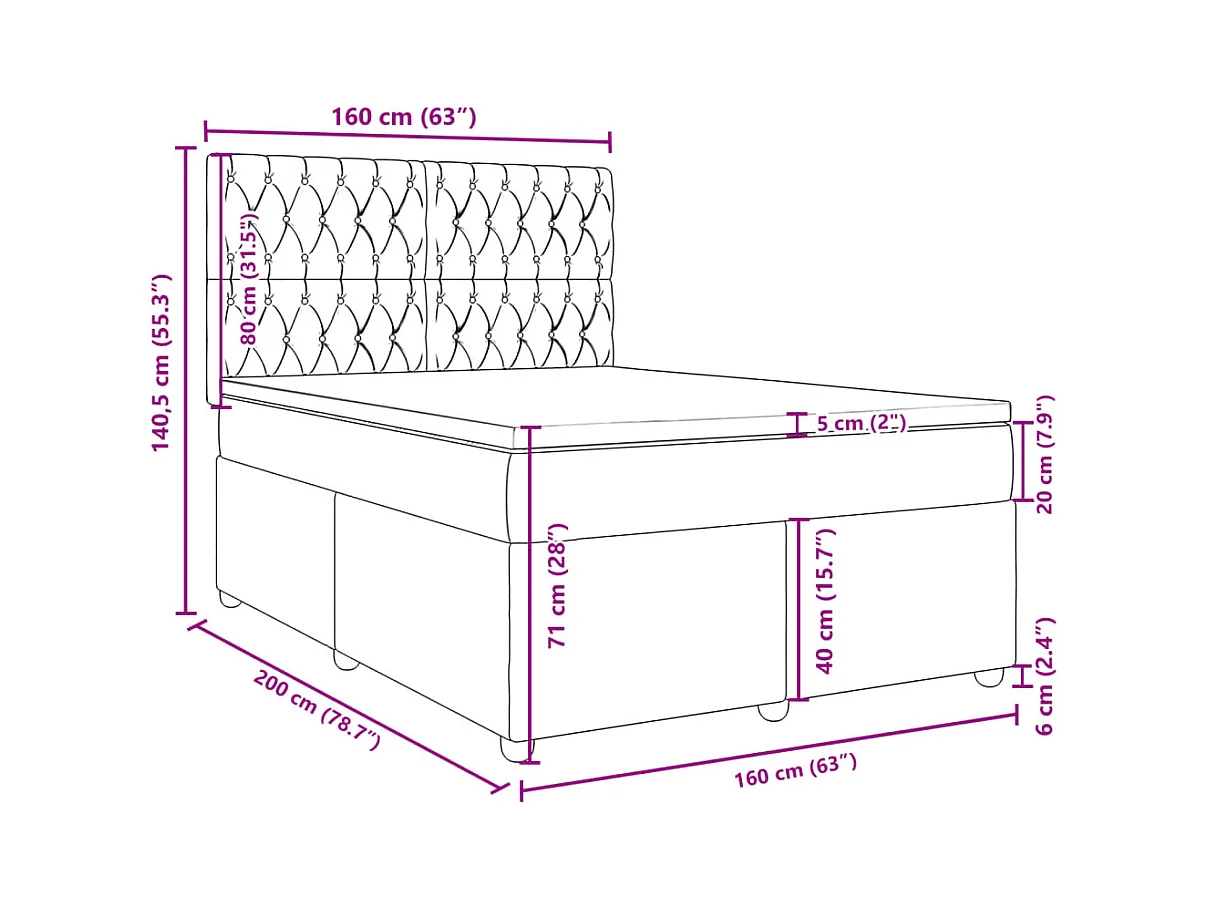 Boxspringbett mit Matratze Schwarz 160x200 cm Stoff