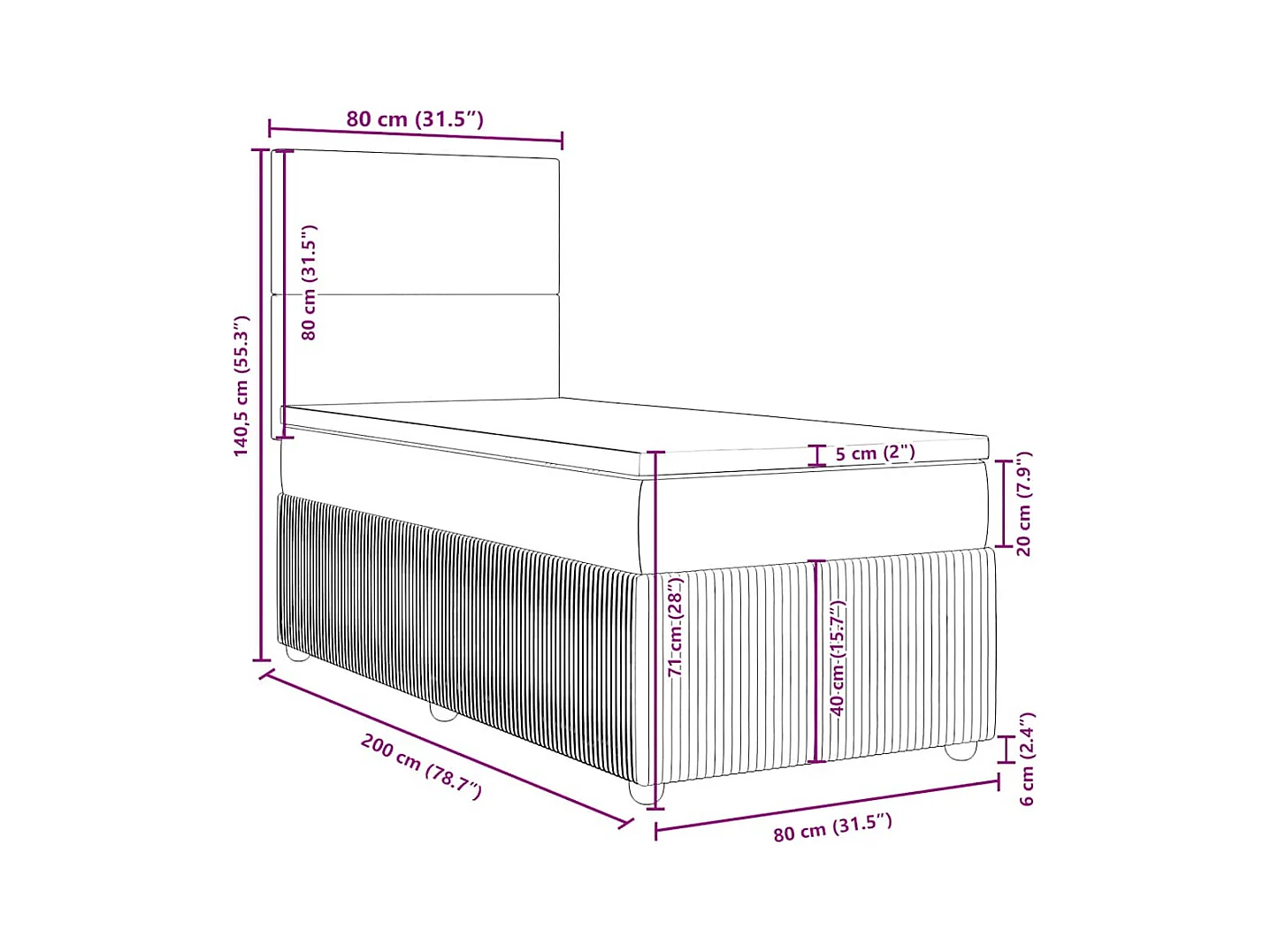 Boxspringbett mit Matratze Schwarz 80x200 cm Stoff