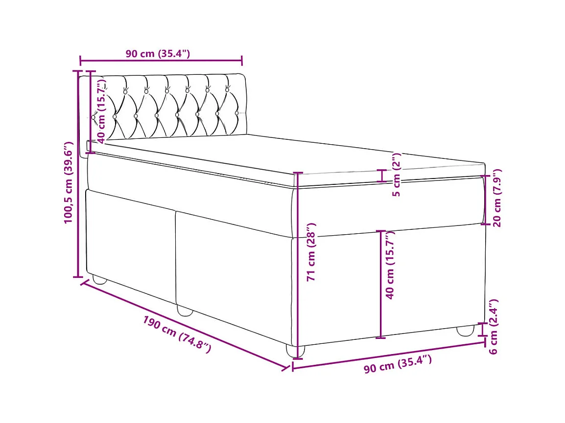 Boxspringbett mit Matratze Schwarz 90x190 cm Stoff
