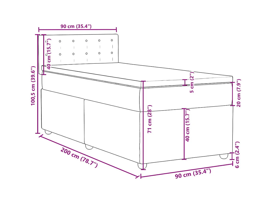 Boxspringbett mit Matratze Schwarz 90x200 cm Stoff