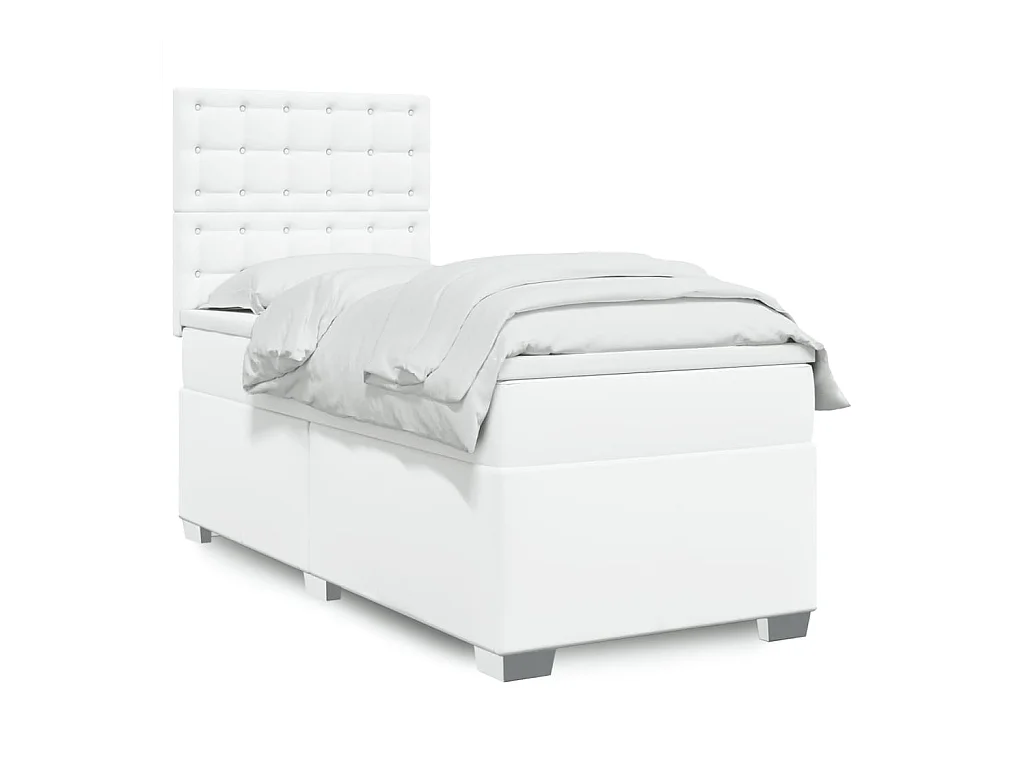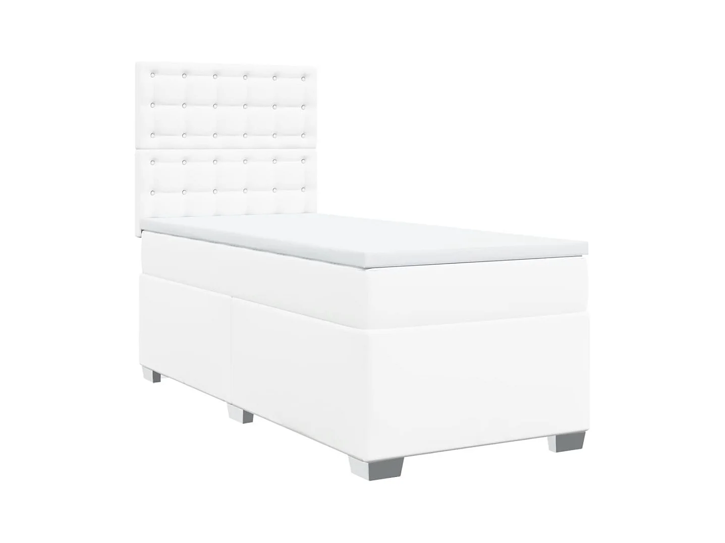 Boxspringbett mit Matratze Weiß 90x200 cm Kunstleder