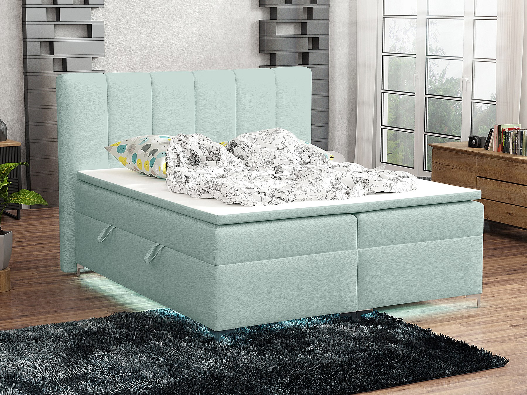 BOXSPRINGBETT mit Topper Avanti LED 140x200 cm, Jasmine 34 (Blassgrün)