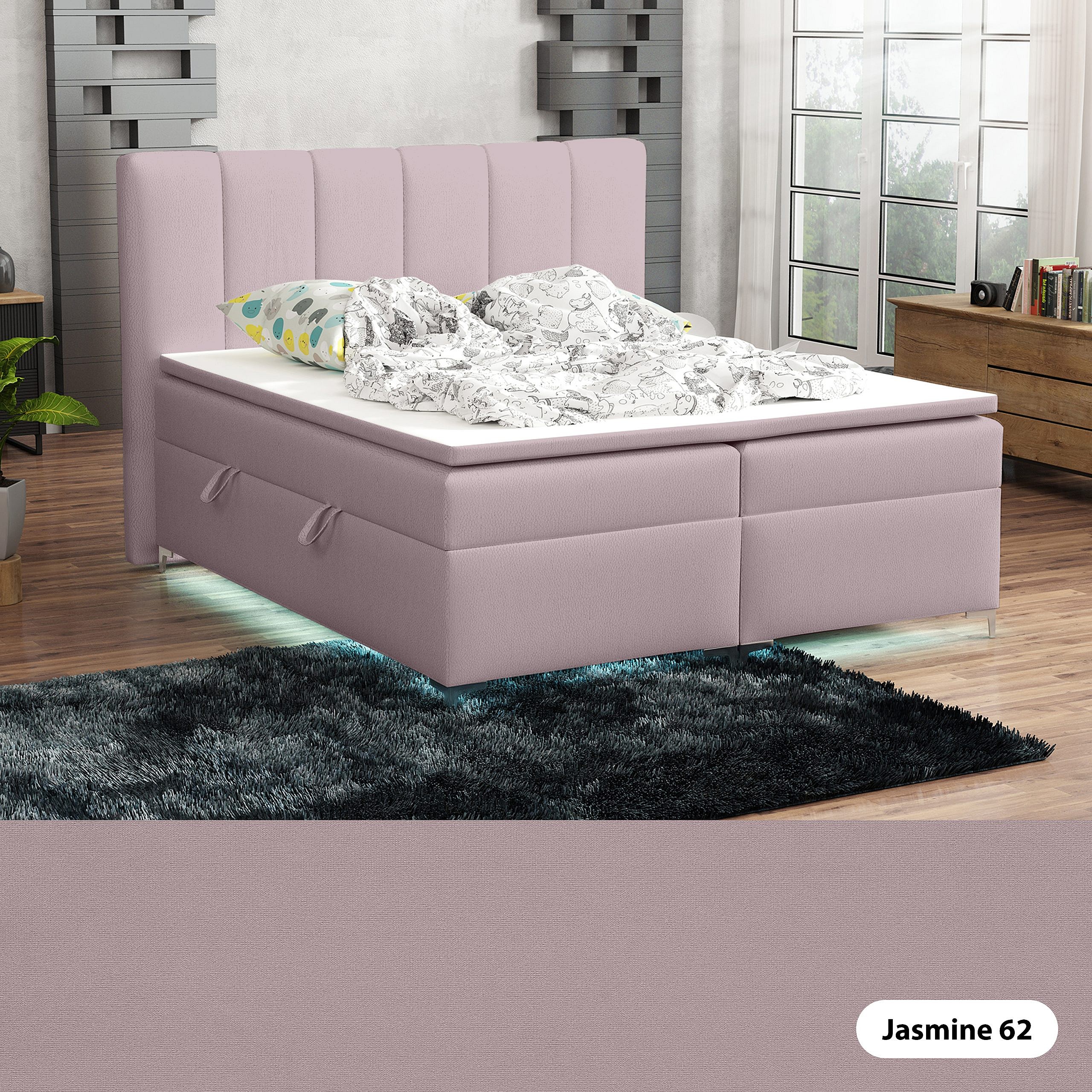 BOXSPRINGBETT mit Topper Avanti LED 140x200 cm, Jasmine 62 (Violett)