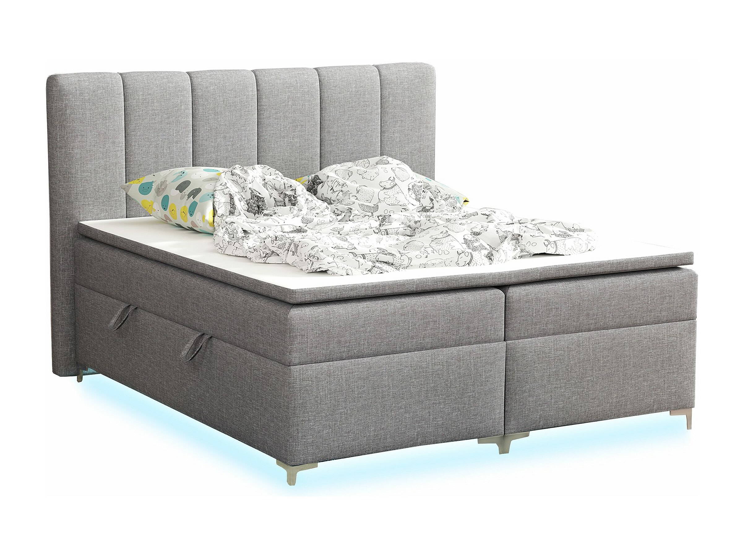 BOXSPRINGBETT mit Topper Avanti LED 140x200 cm, Lux 05 (Hellgrau)