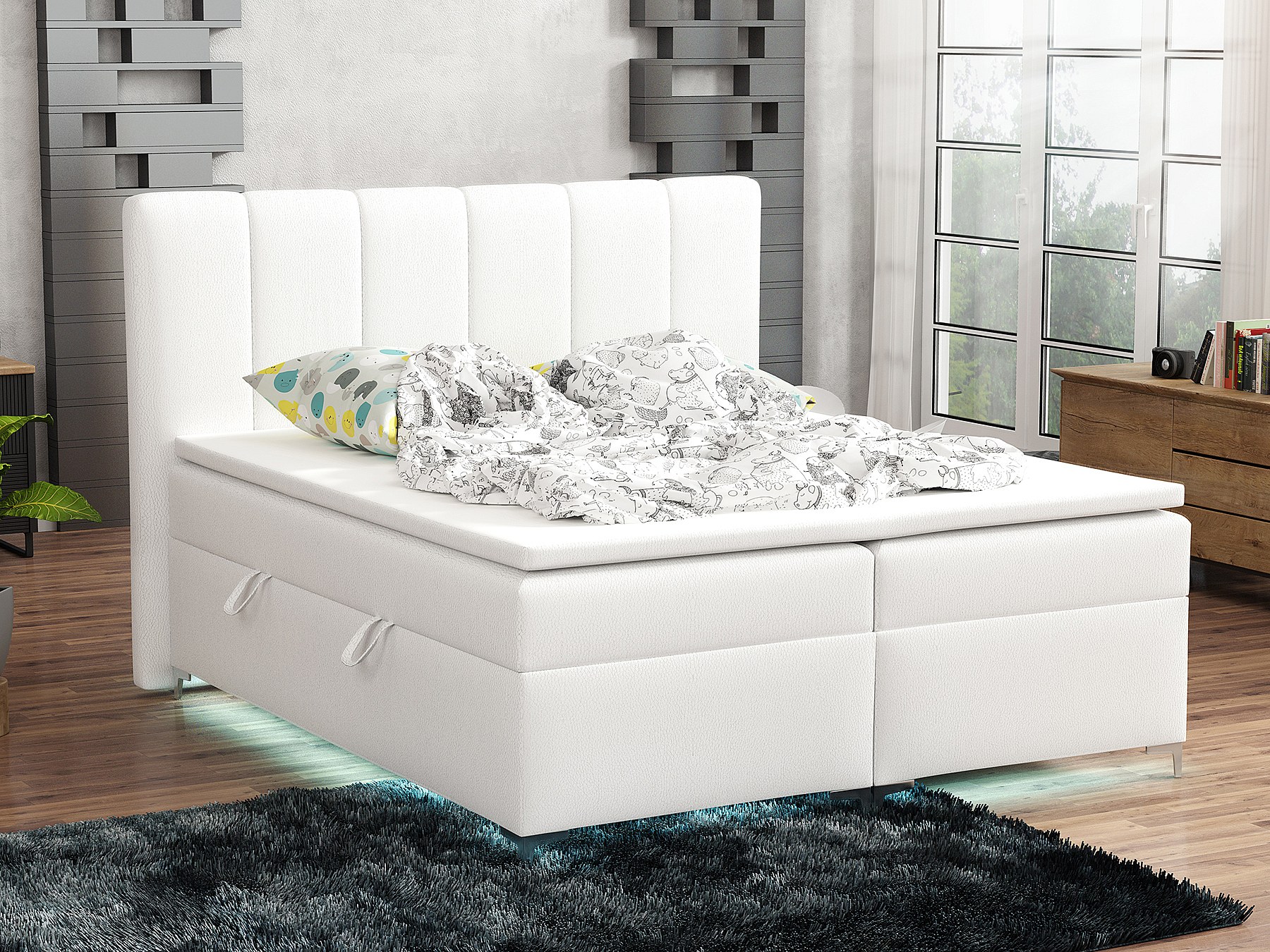 BOXSPRINGBETT mit Topper Avanti LED 160x200 cm, Jasmine 20 (Weiss)