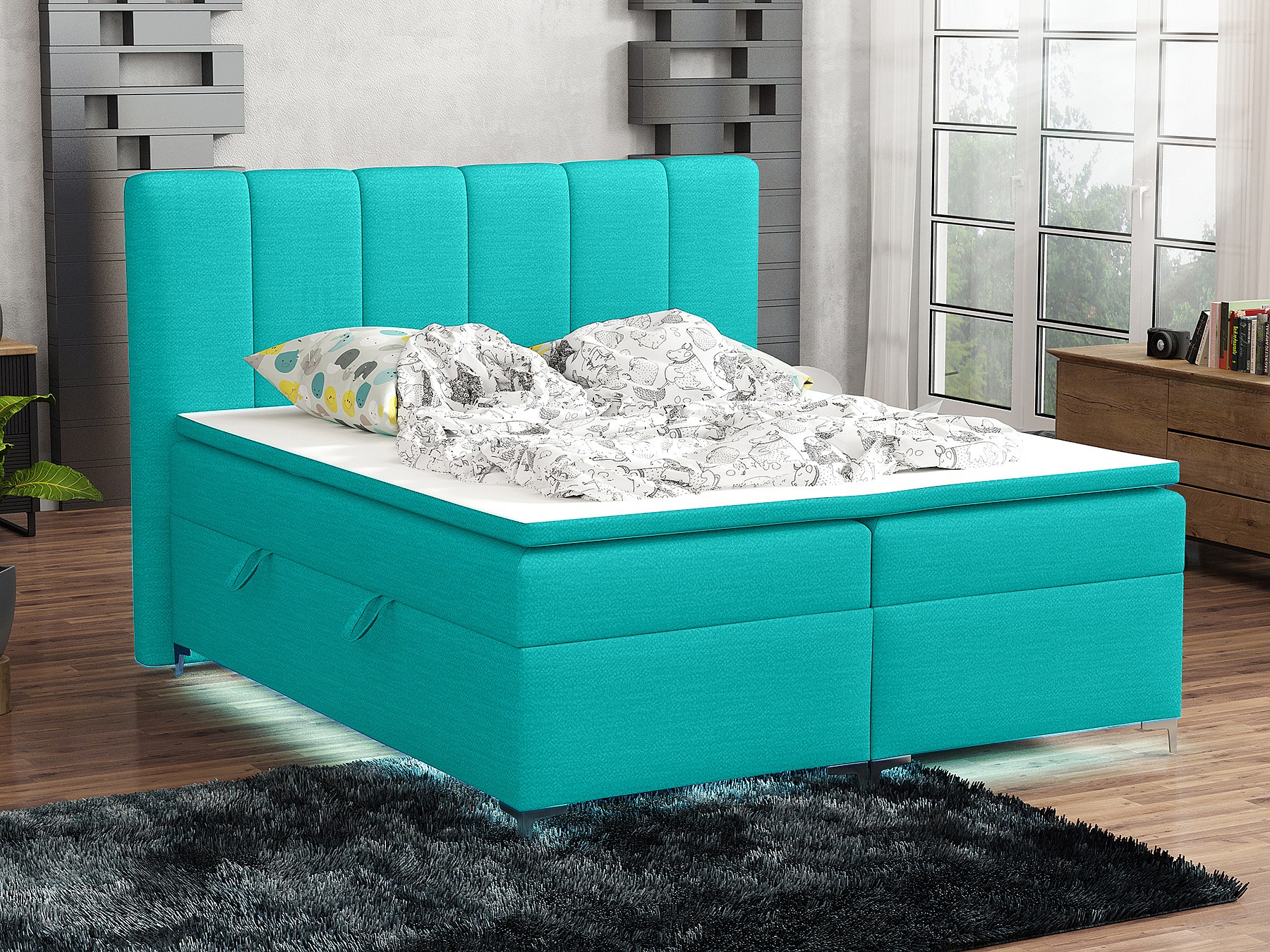 BOXSPRINGBETT mit Topper Avanti LED 160x200 cm, Orinoco 85 (Türkis)