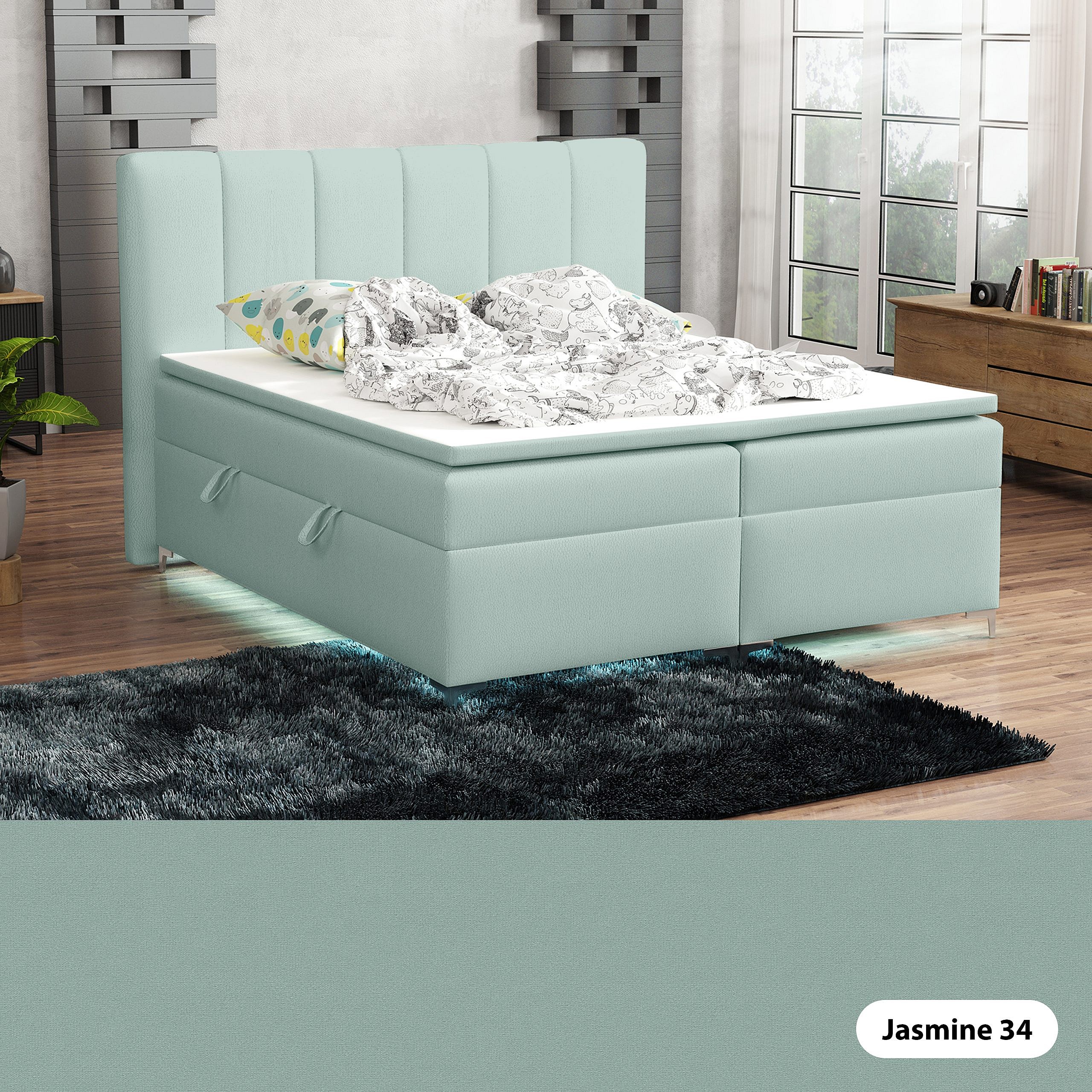 BOXSPRINGBETT mit Topper Avanti LED 180x200 cm, Jasmine 34 (Blassgrün)