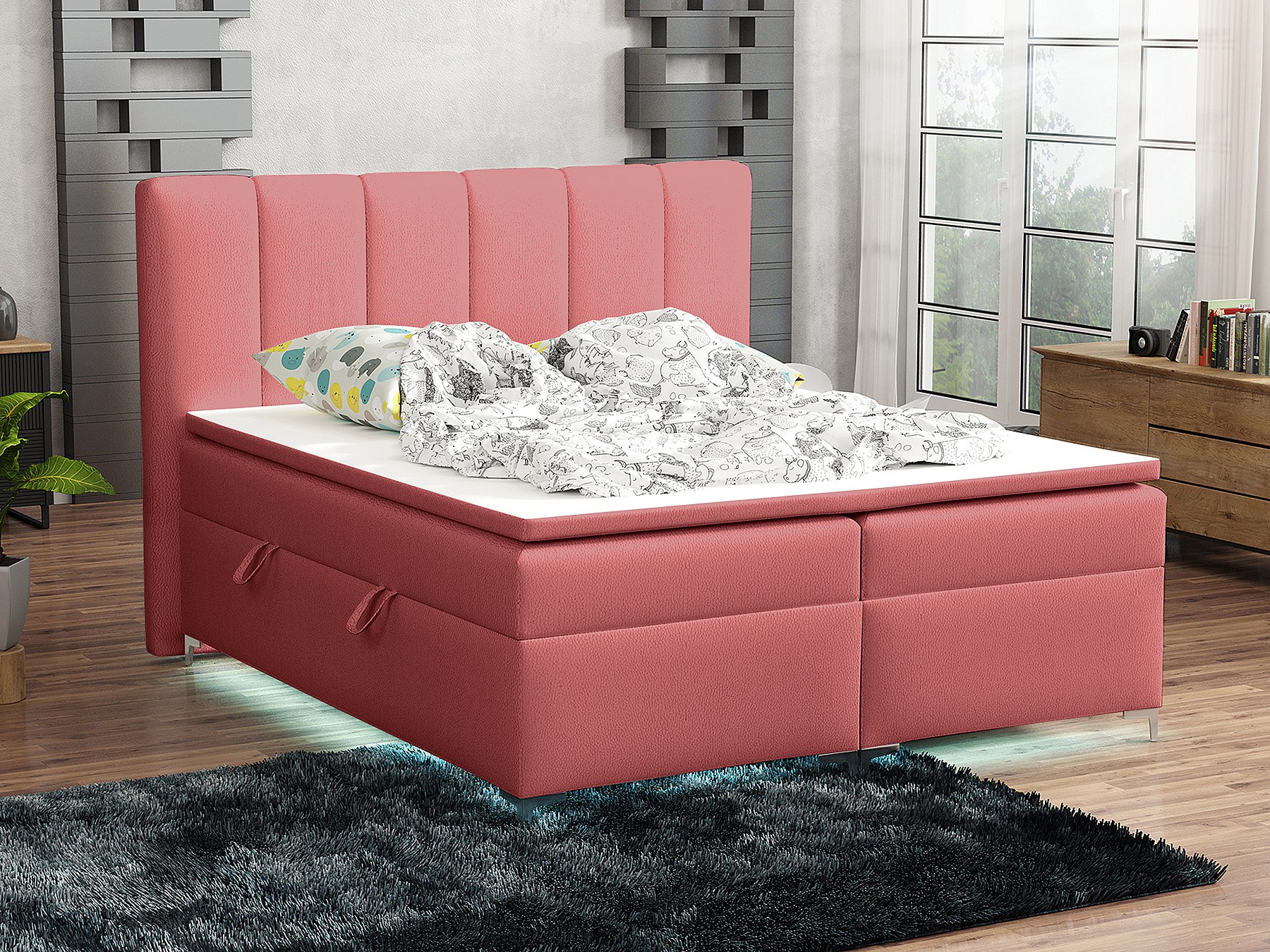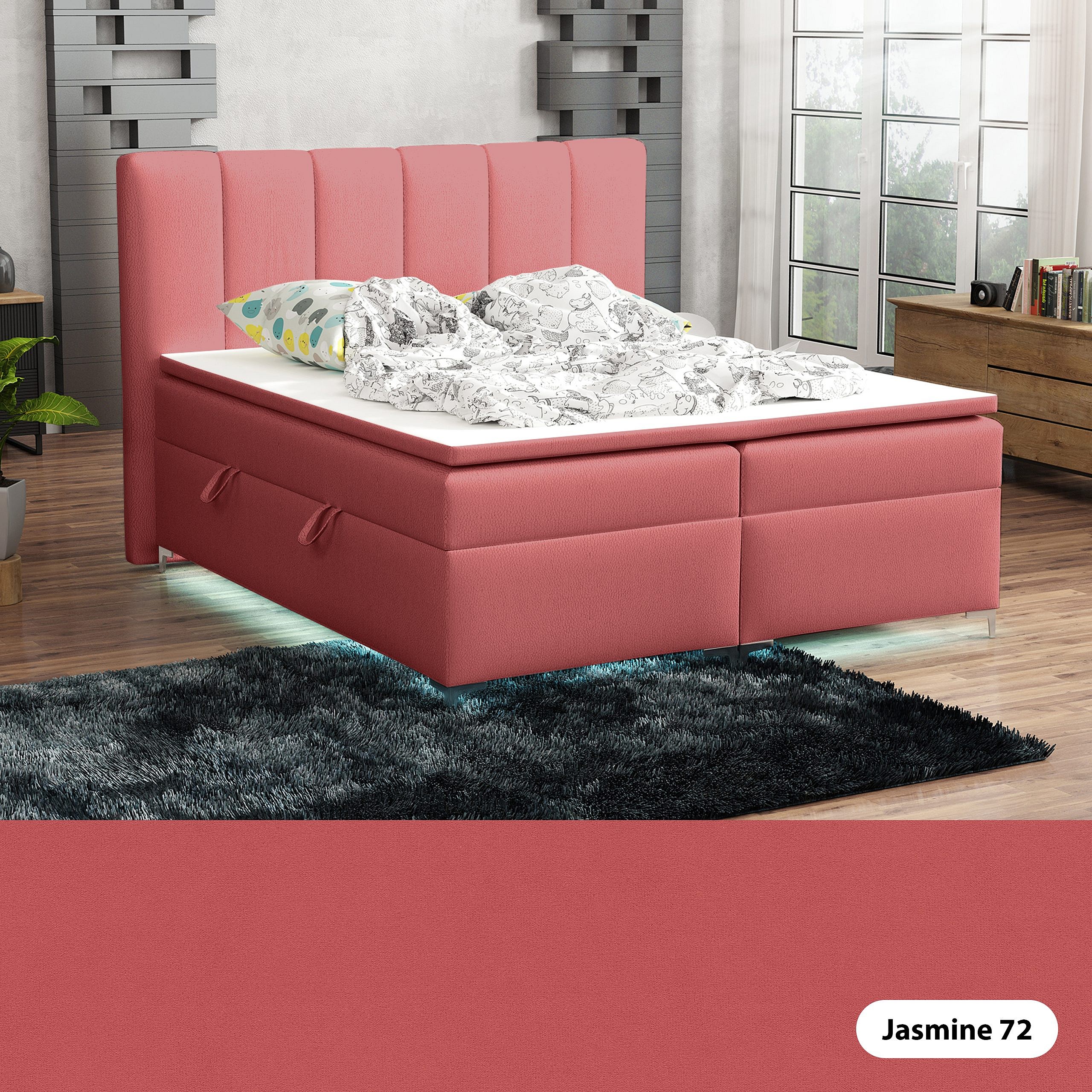 BOXSPRINGBETT mit Topper Avanti LED 180x200 cm, Jasmine 72 (Oktoberrot)