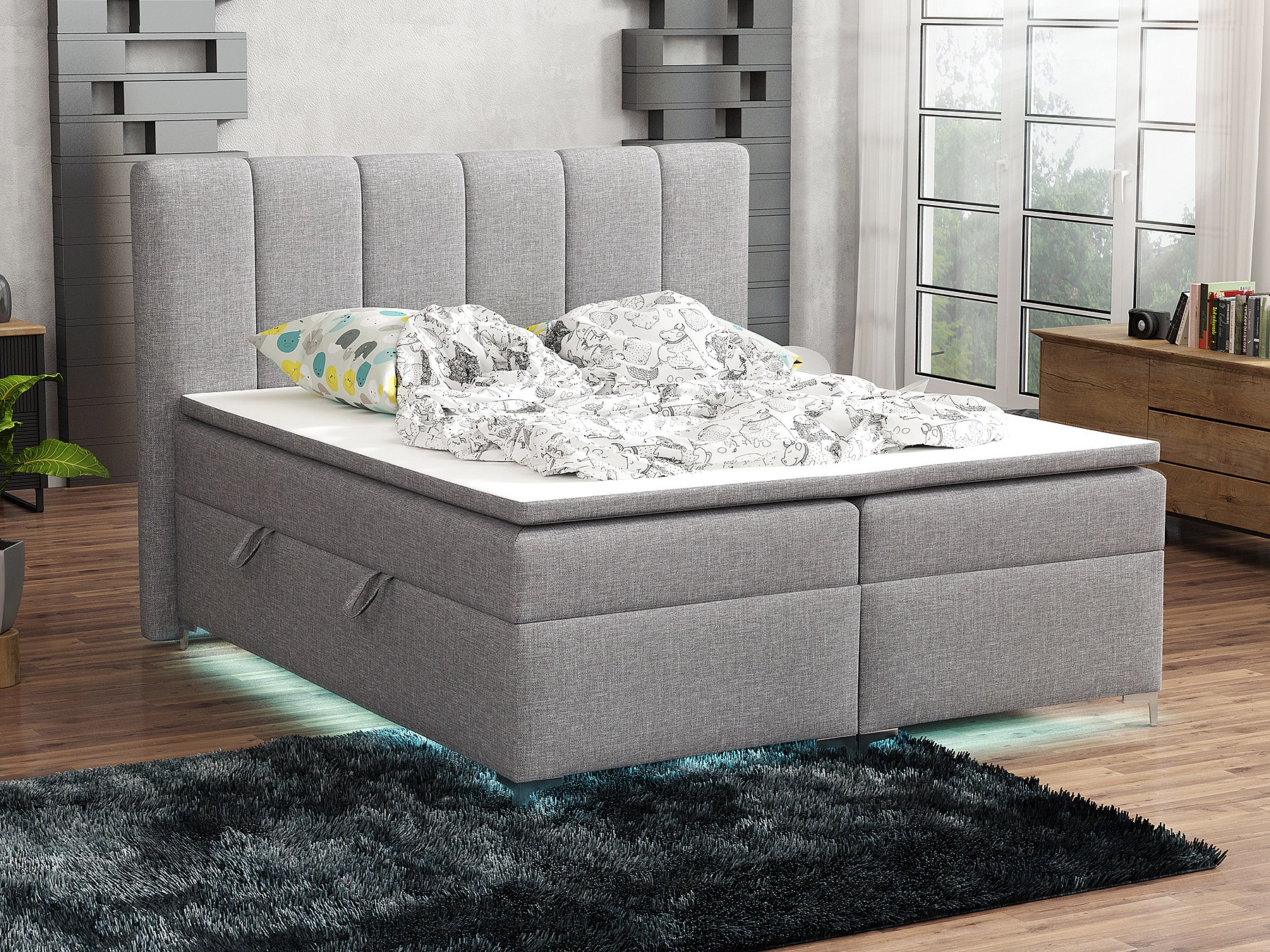 BOXSPRINGBETT mit Topper Avanti LED 180x200 cm, Lux 05 (Hellgrau)