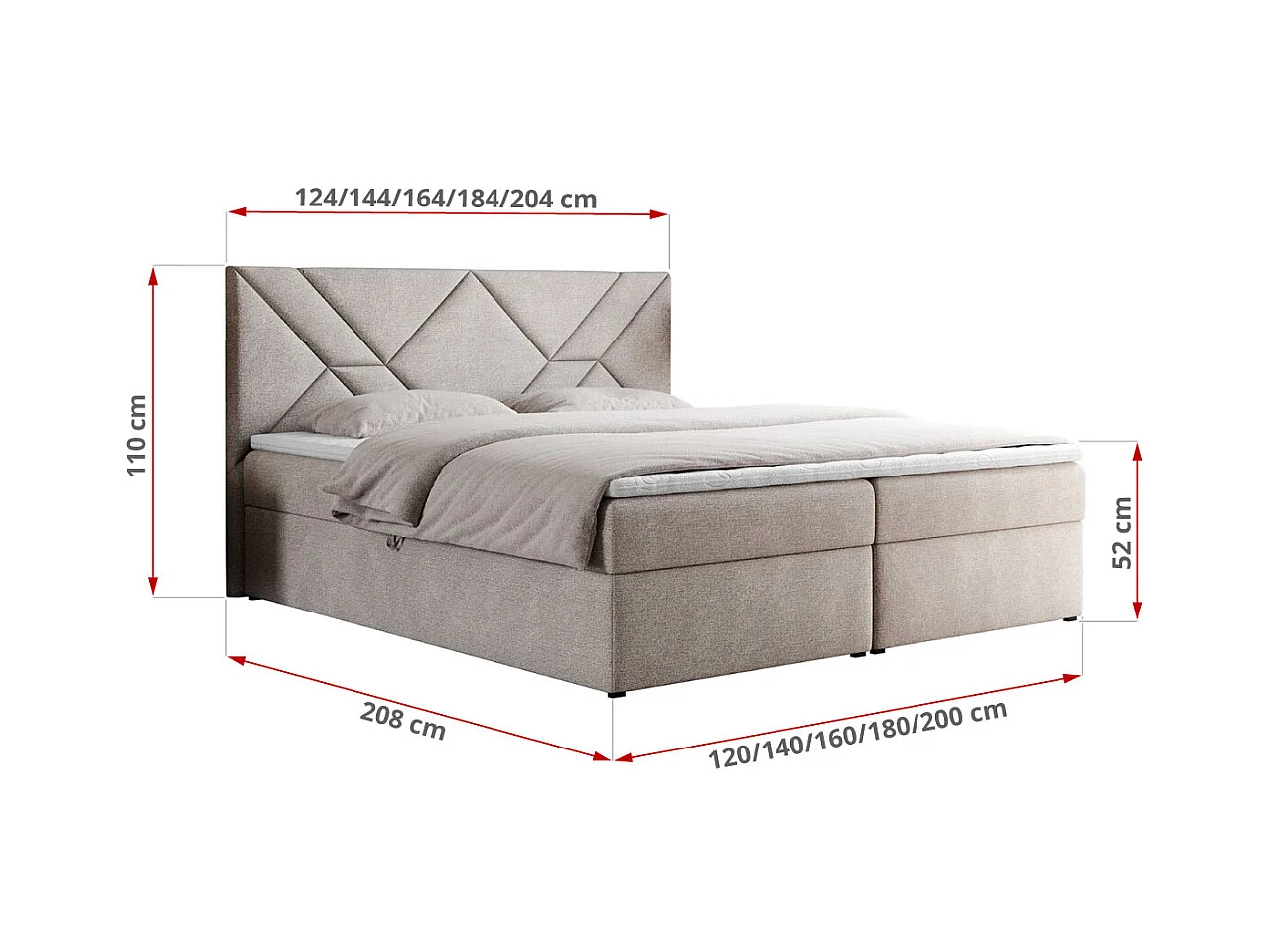 Boxspringbett NEOMI - dekorativem Kopfteil, Polsterbett mit Multipocket-Matratzen, zwei Bettkästen - 180x200 cm - H4 - Hellgrau Strukture