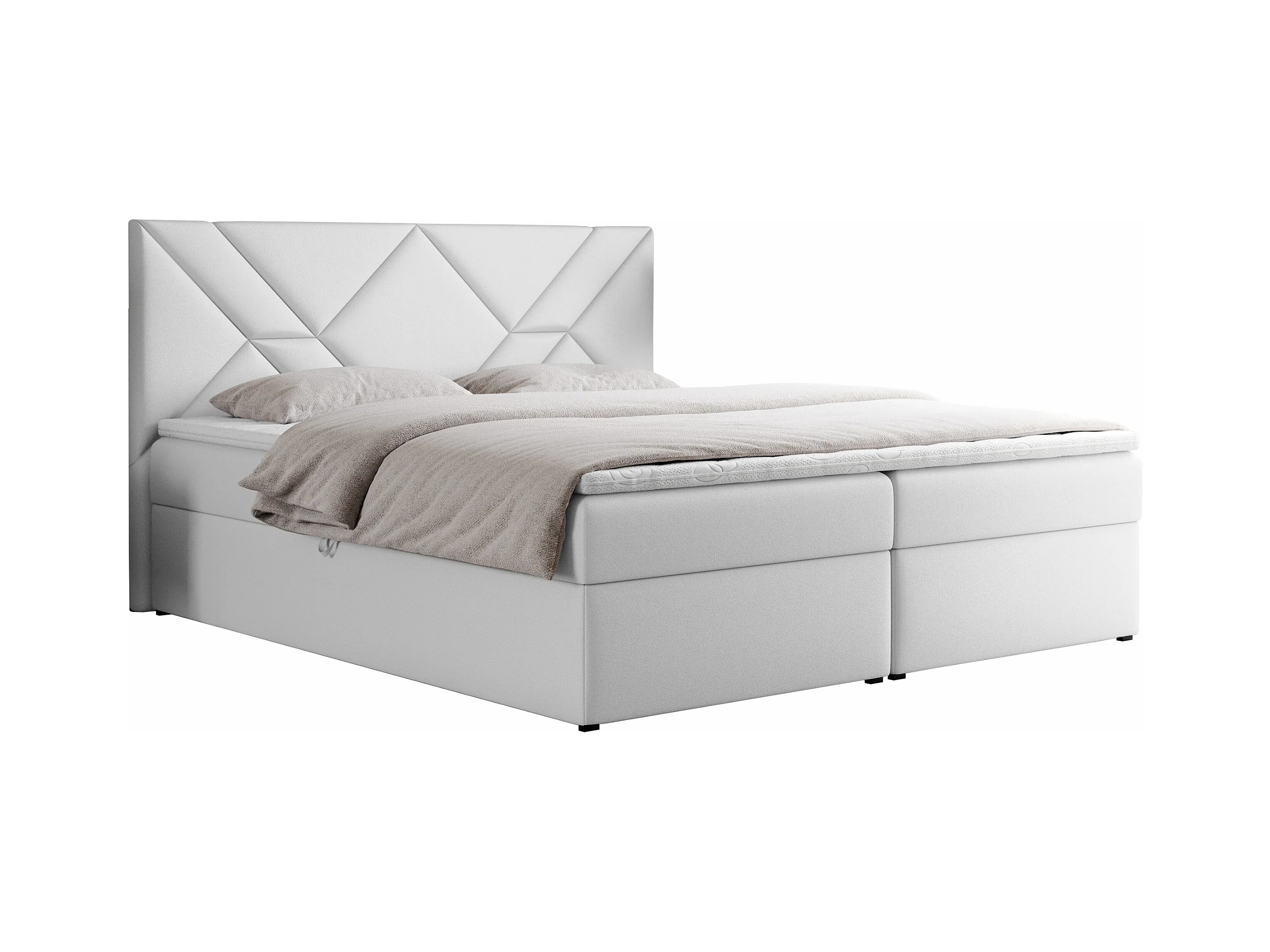 Boxspringbett NEOMI - dekorativem Kopfteil, Polsterbett mit Multipocket-Matratzen, zwei Bettkästen - 180x200 cm - H4 - Hellgrau Strukture