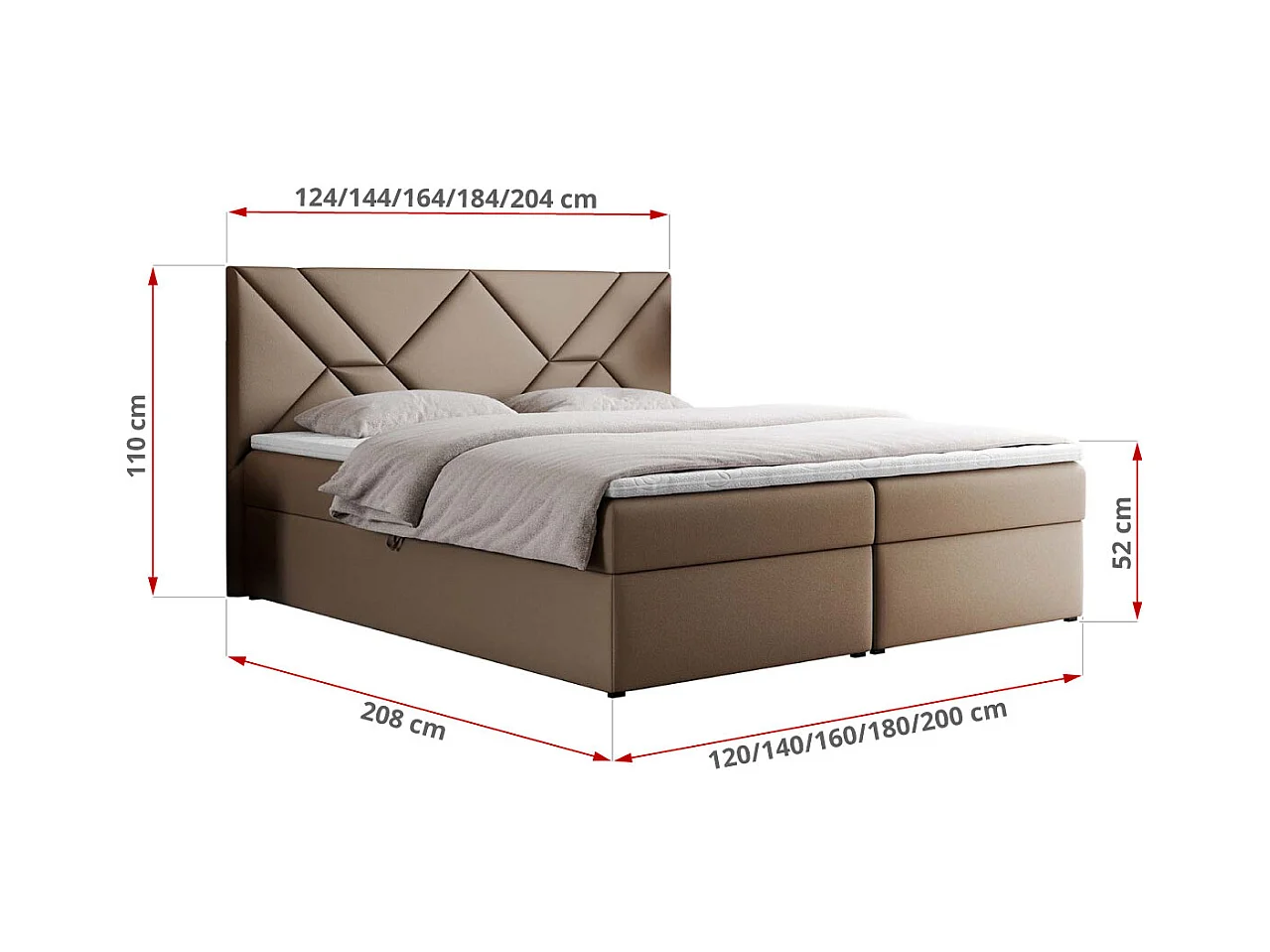 Boxspringbett NEOMI - dekorativem Kopfteil, Polsterbett mit Multipocket-Matratzen, zwei Bettkästen - 200x200 cm - H4 - Hellgrau Strukture