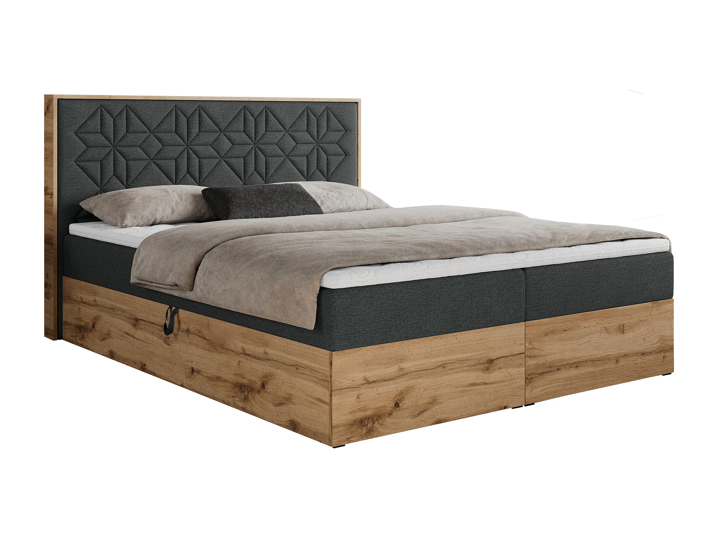 Boxspringbett NESSI - mit hoher Kopfstütze, Multipocket-Matratze und Topper, Doppelbett mit Bettkästen - 120x200 cm - H3 - Dunkelgrau Strukture