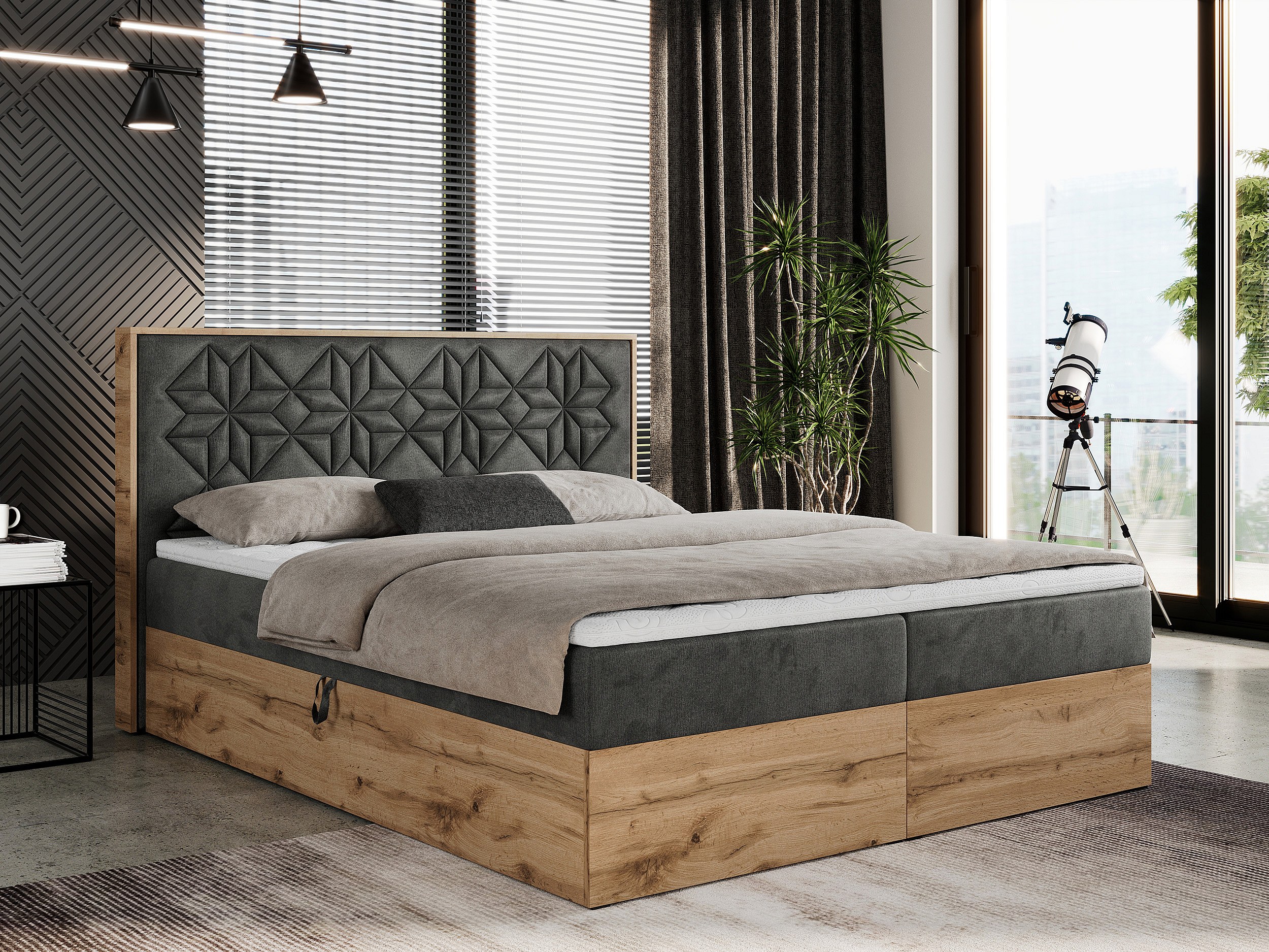 Boxspringbett NESSI - mit hoher Kopfstütze, Multipocket-Matratze und Topper, Doppelbett mit Bettkästen - 120x200 cm - H4 - Dunkelgrau Velvet
