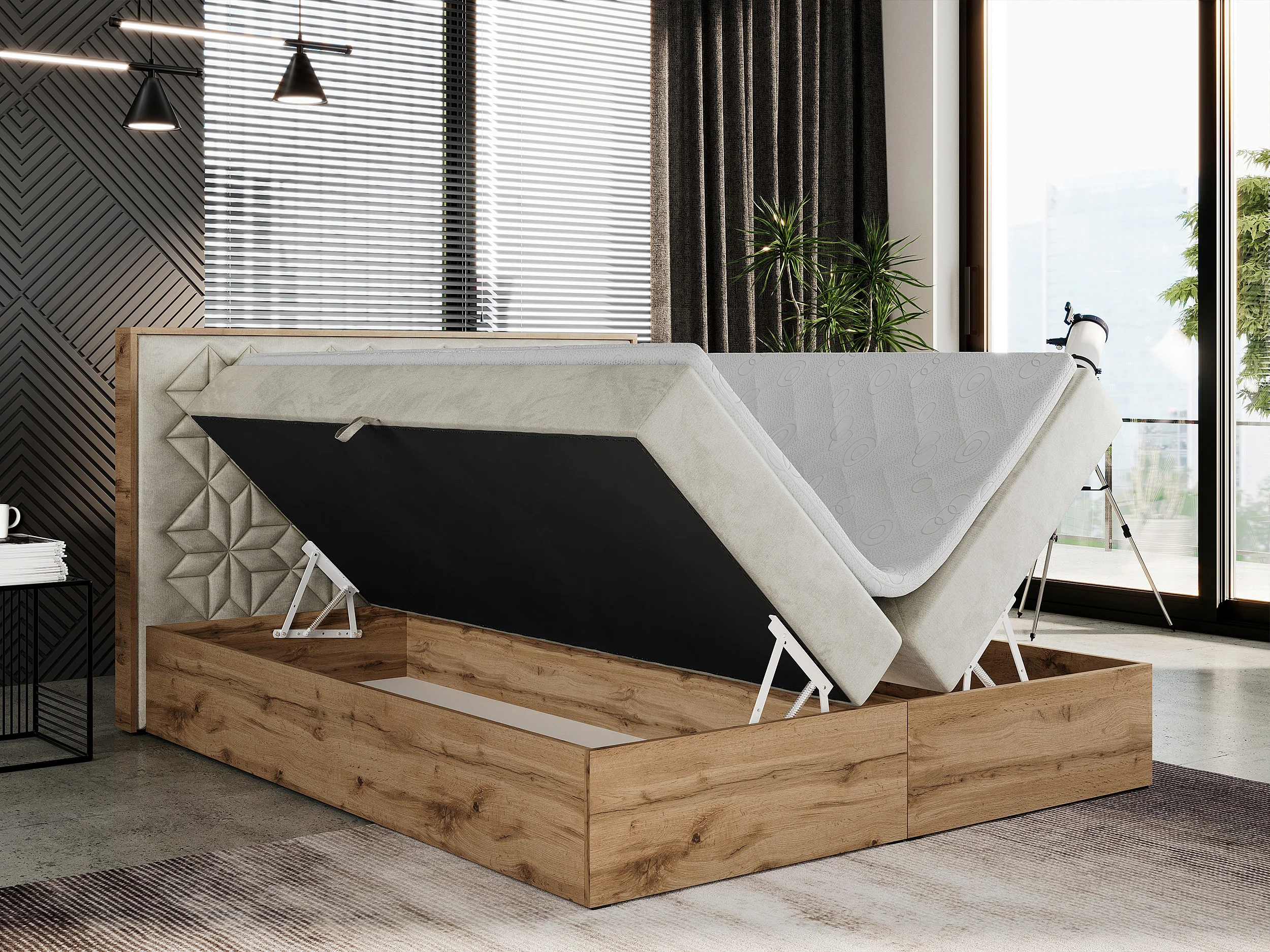 Boxspringbett NESSI - mit hoher Kopfstütze, Multipocket-Matratze und Topper, Doppelbett mit Bettkästen - 160x200 cm - H3 - Beige Velvet