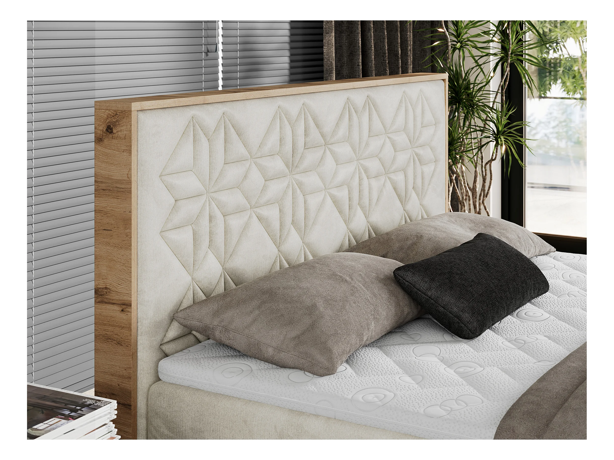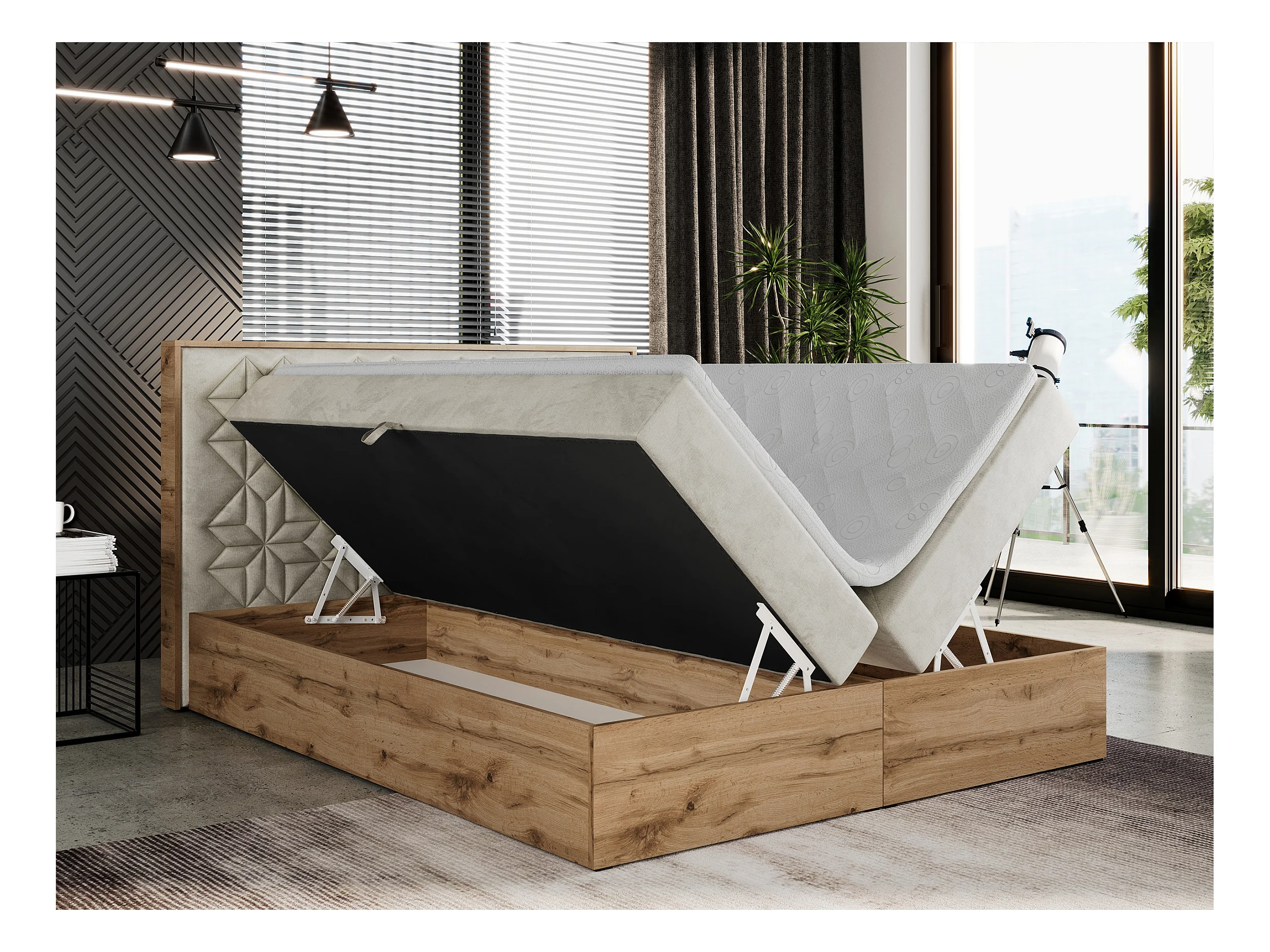 Boxspringbett NESSI - mit hoher Kopfstütze, Multipocket-Matratze und Topper, Doppelbett mit Bettkästen - 160x200 cm - H4 - Beige Velvet