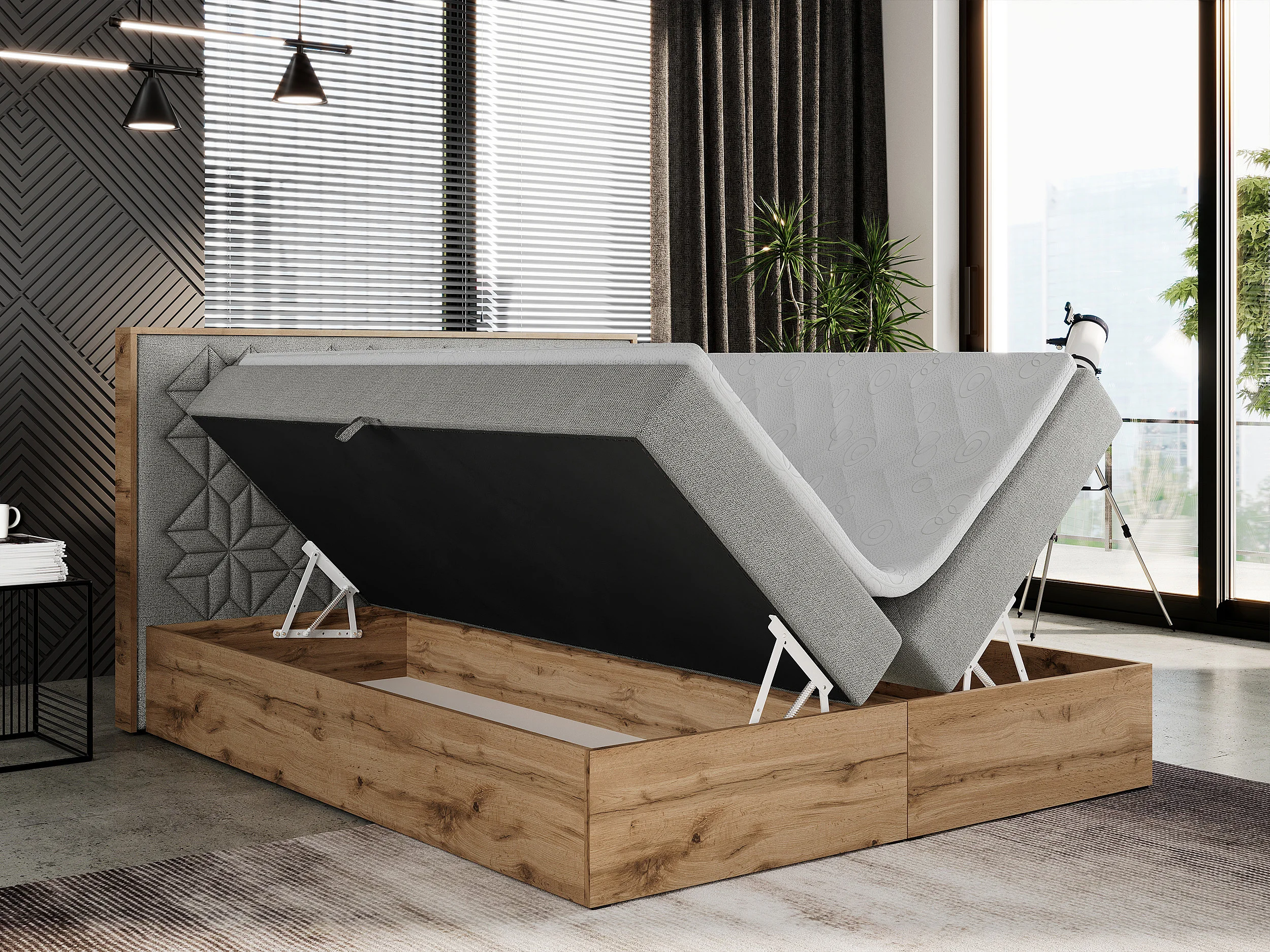 Boxspringbett NESSI - mit hoher Kopfstütze, Multipocket-Matratze und Topper, Doppelbett mit Bettkästen - 180x200 cm - H3 - Hellgrau Strukture