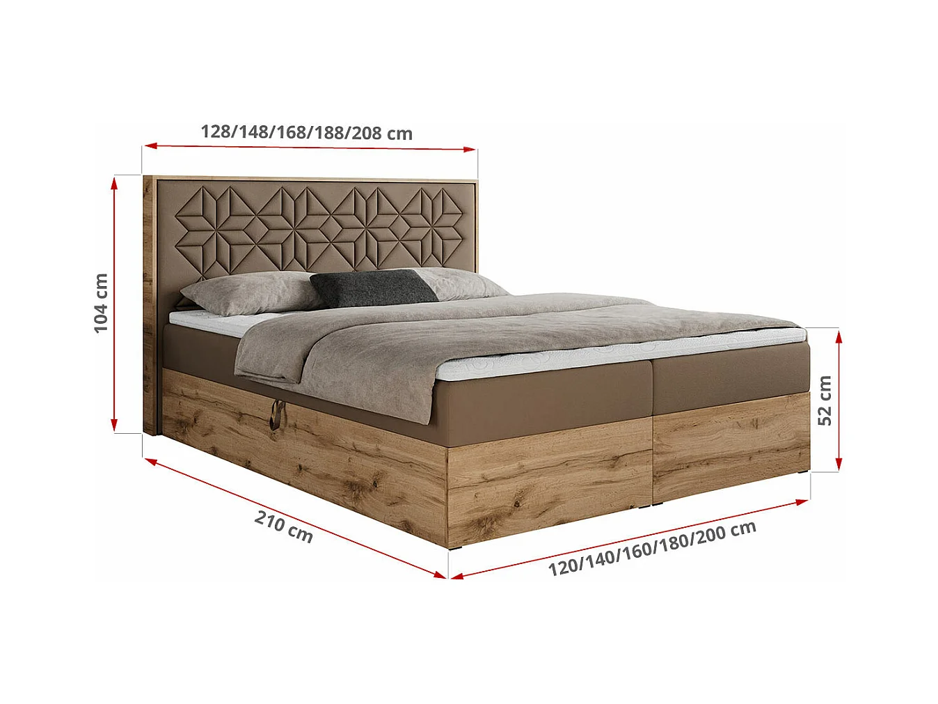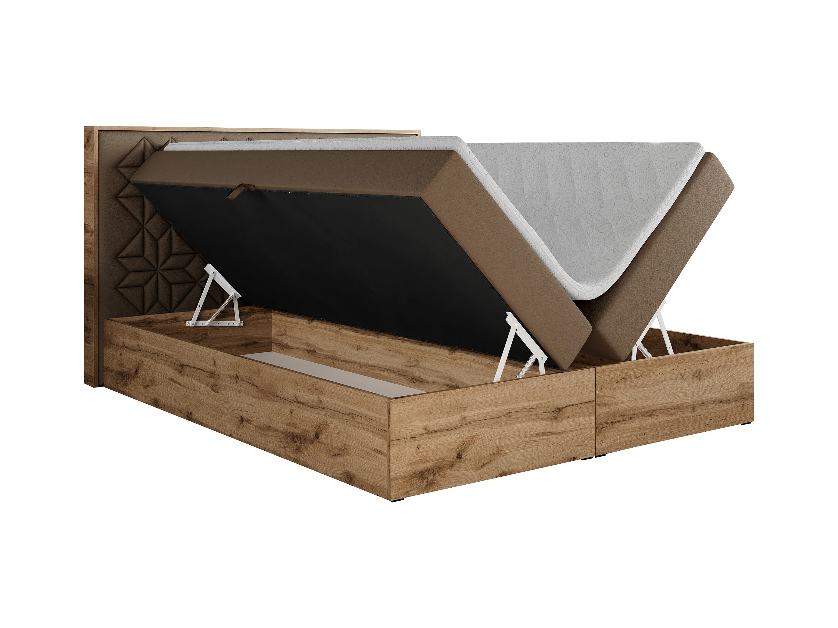 Boxspringbett NESSI - mit hoher Kopfstütze, Multipocket-Matratze und Topper, Doppelbett mit Bettkästen - 200x200 cm - H4 - Braun Kunstleder
