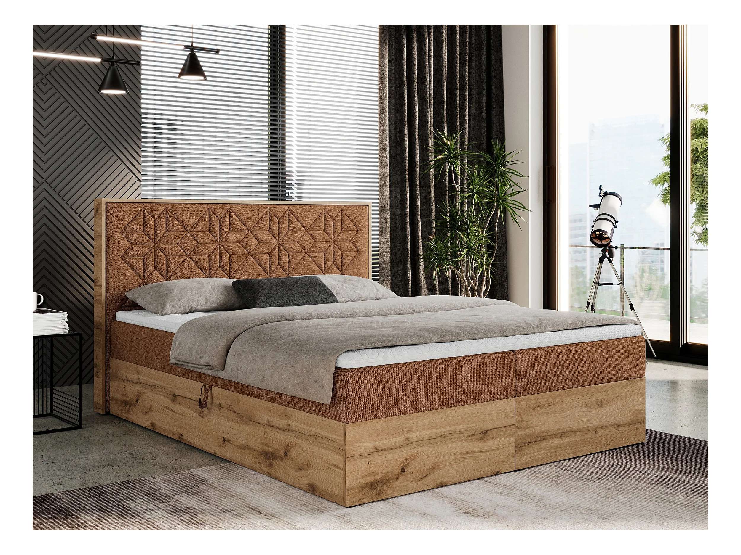 Boxspringbett NESSI - mit hoher Kopfstütze, Multipocket-Matratze und Topper, Doppelbett mit Bettkästen - 200x200 cm - H4 - Orange Strukture