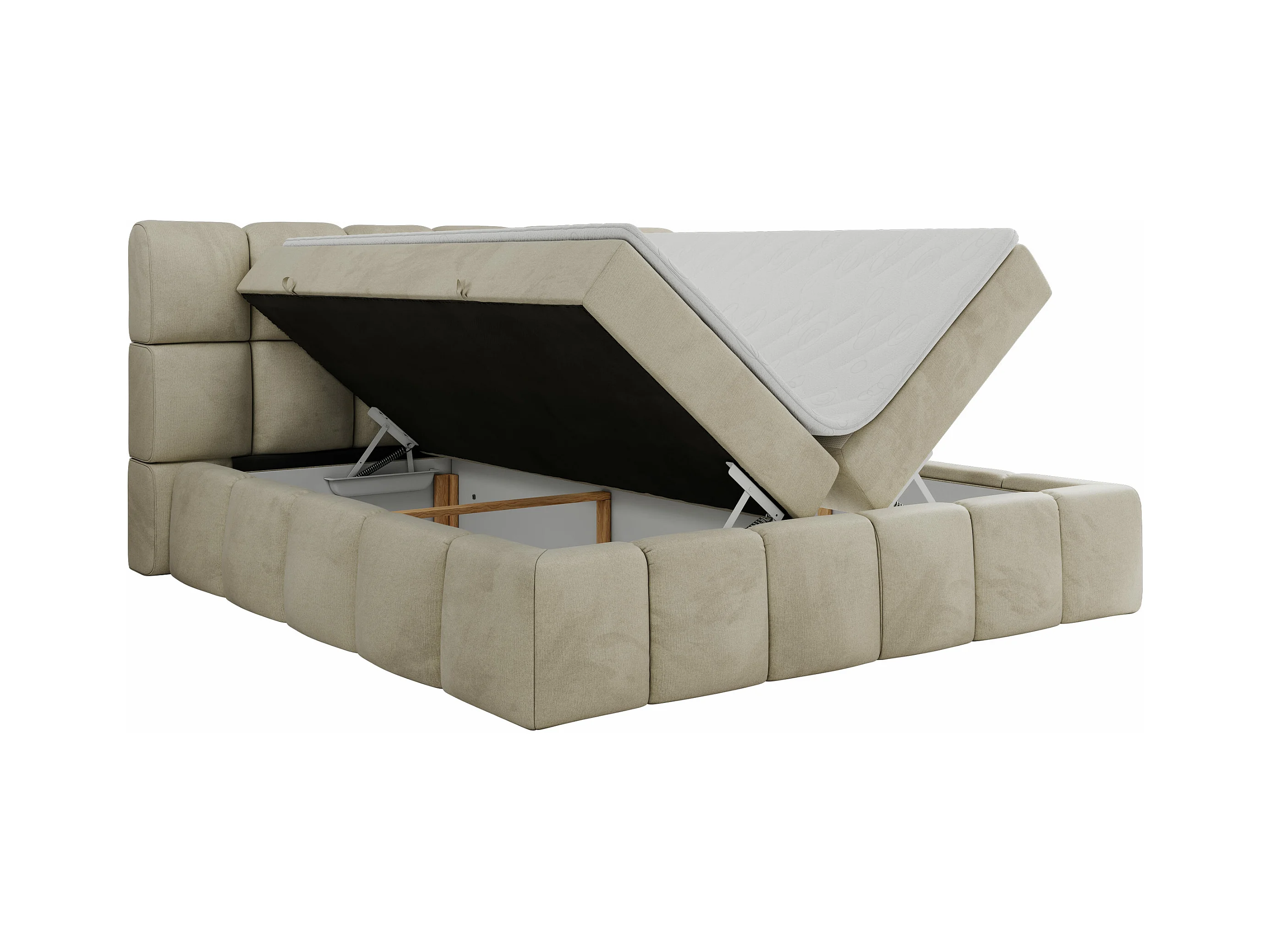 Boxspringbett NIRA - dekorativ kopfteil, Bettkästen und Multipocket-Matratze, Doppelbett für Schlafzimmer - 120x200 cm - H3 - Beige Velvet