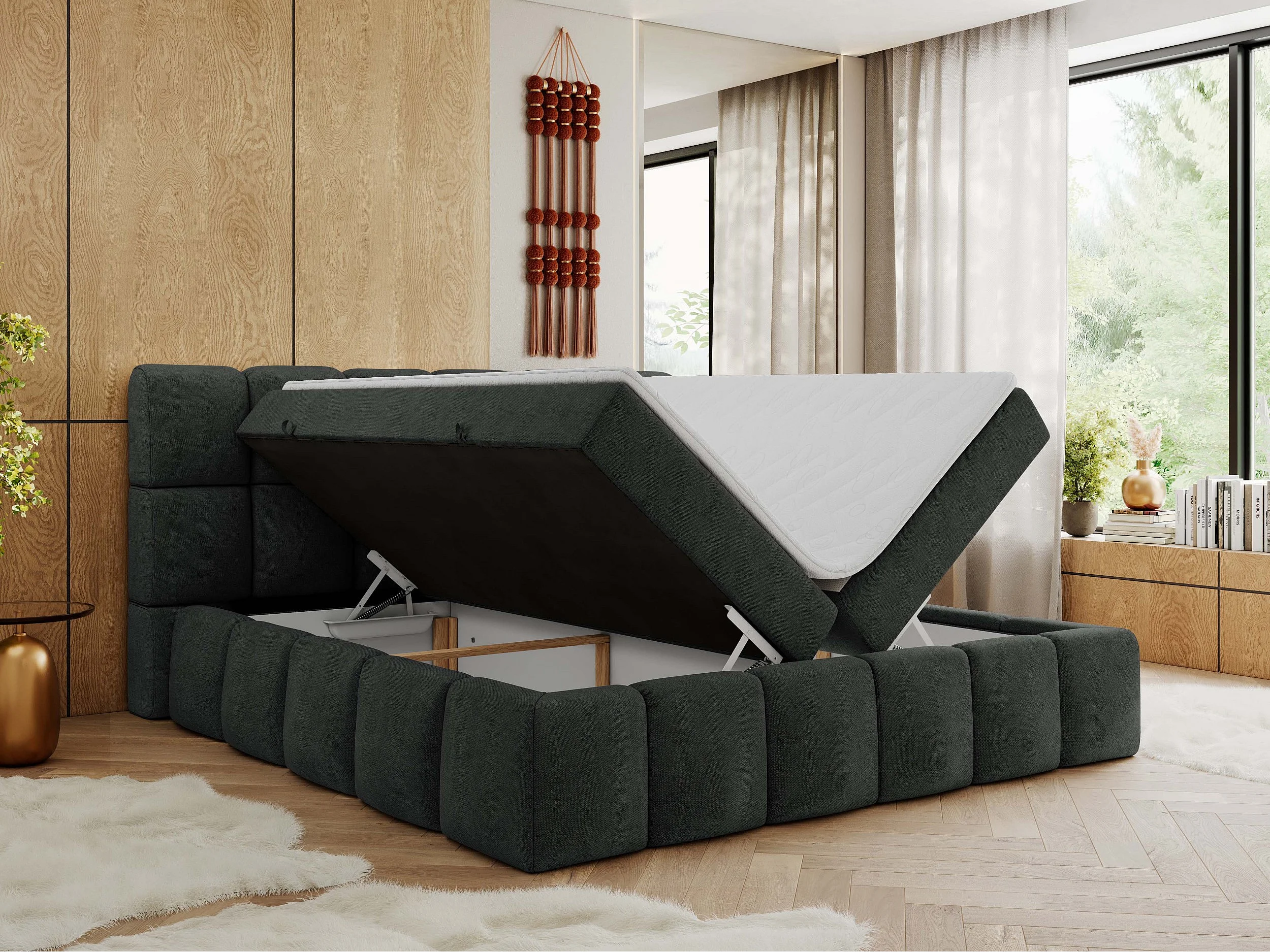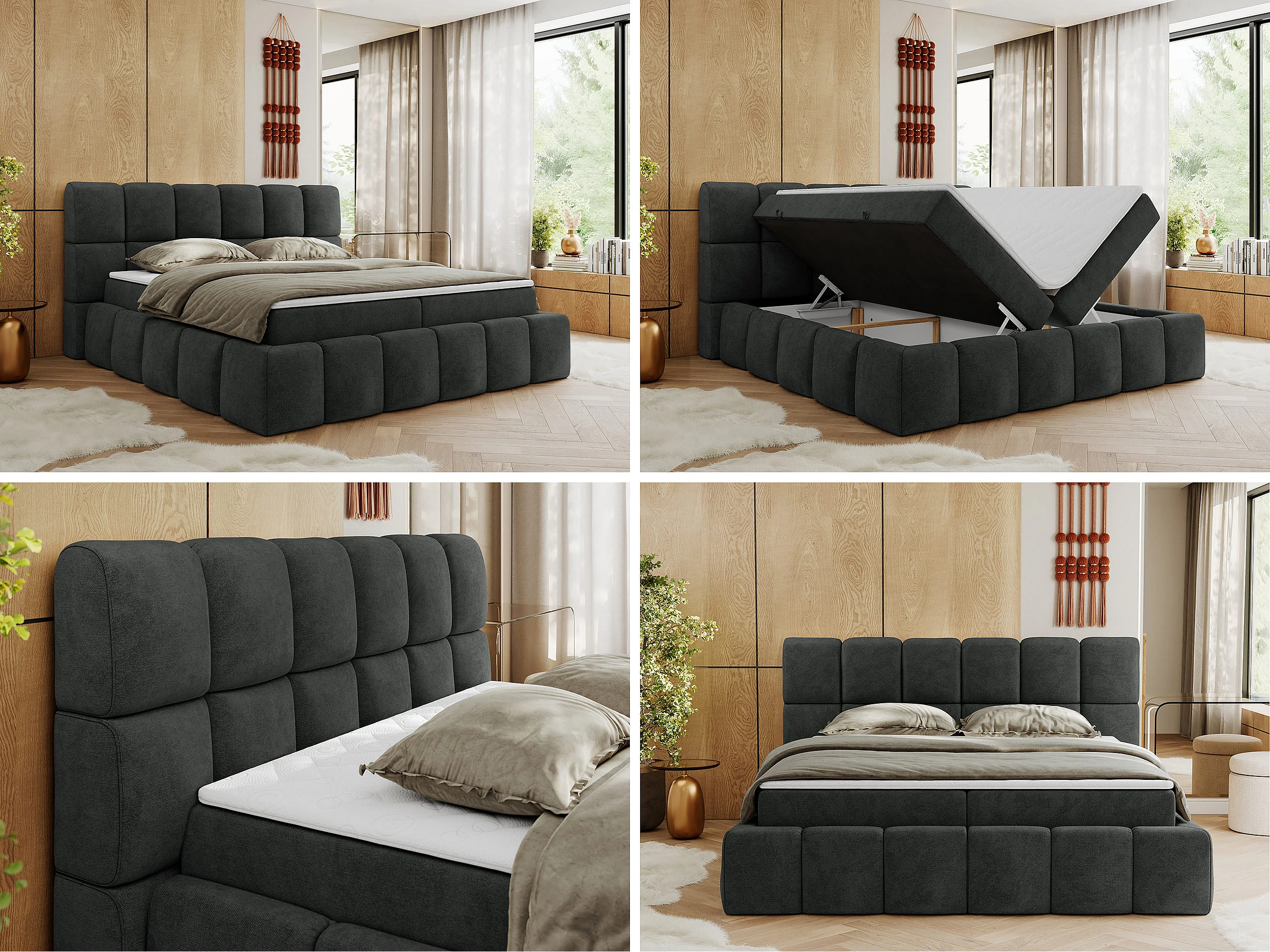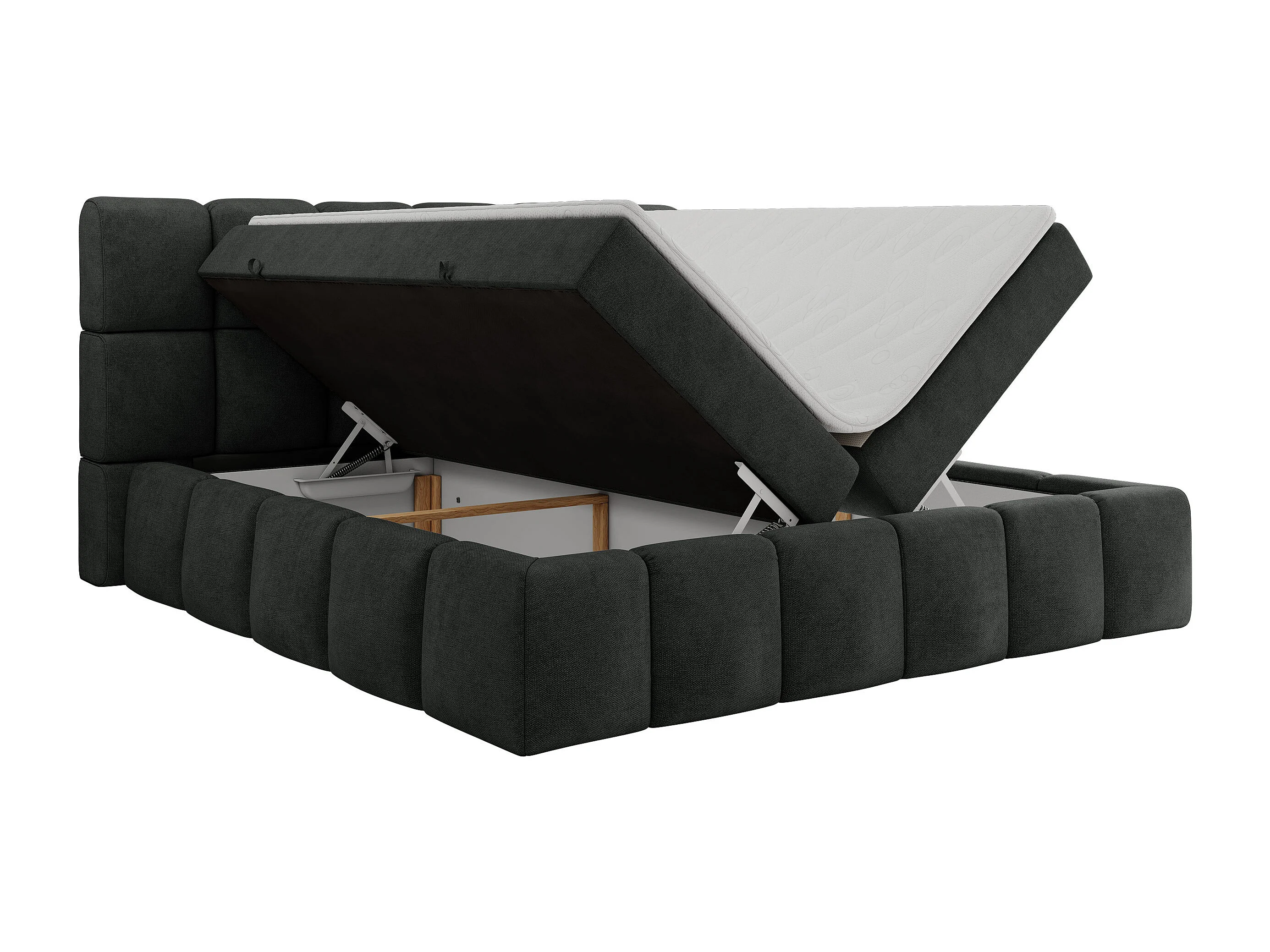 Boxspringbett NIRA - dekorativ kopfteil, Bettkästen und Multipocket-Matratze, Doppelbett für Schlafzimmer - 120x200 cm - H3 - Dunkelgrau Strukture