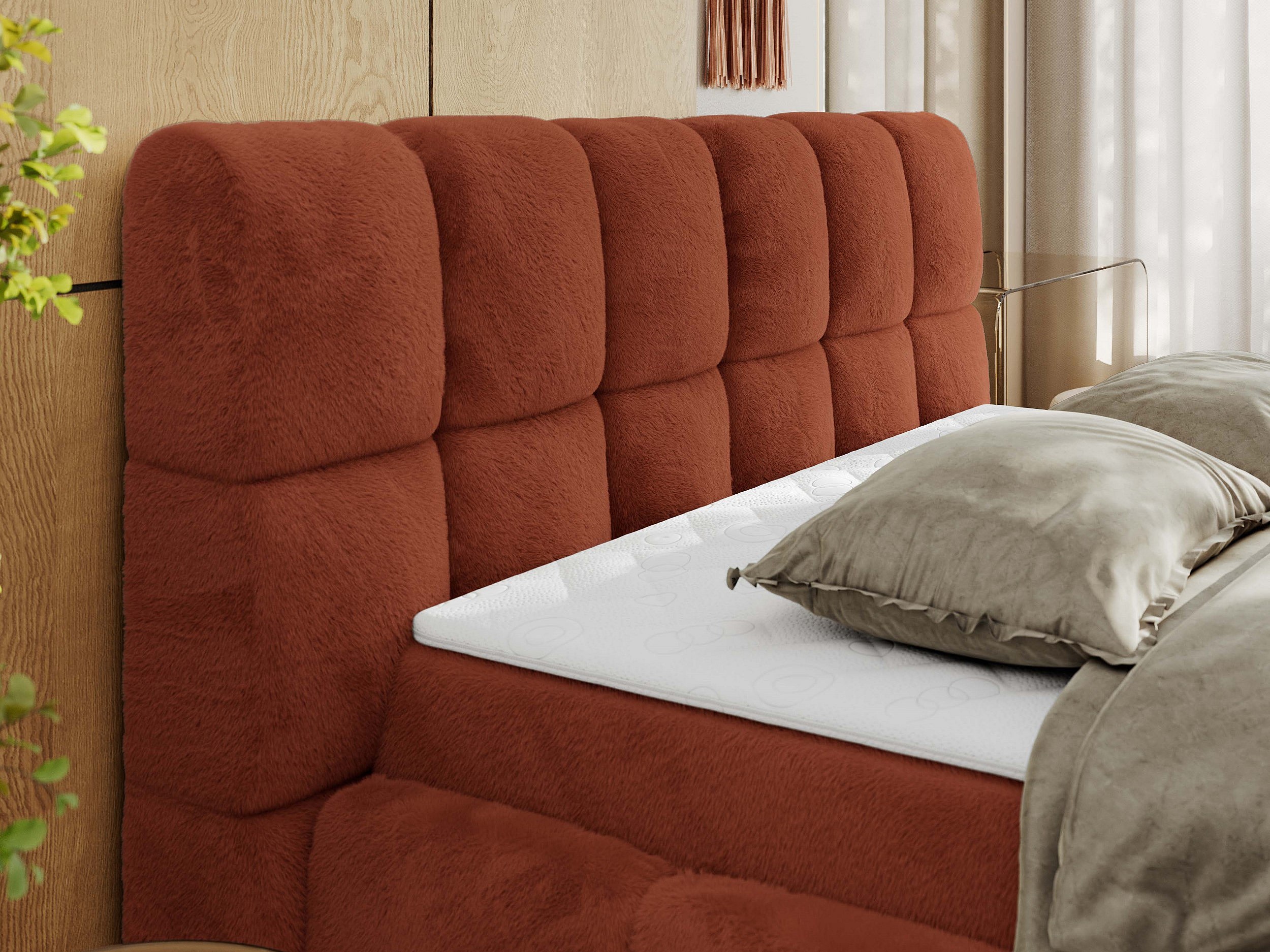 Boxspringbett NIRA - dekorativ kopfteil, Bettkästen und Multipocket-Matratze, Doppelbett für Schlafzimmer - 120x200 cm - H3 - Orange Plüsch