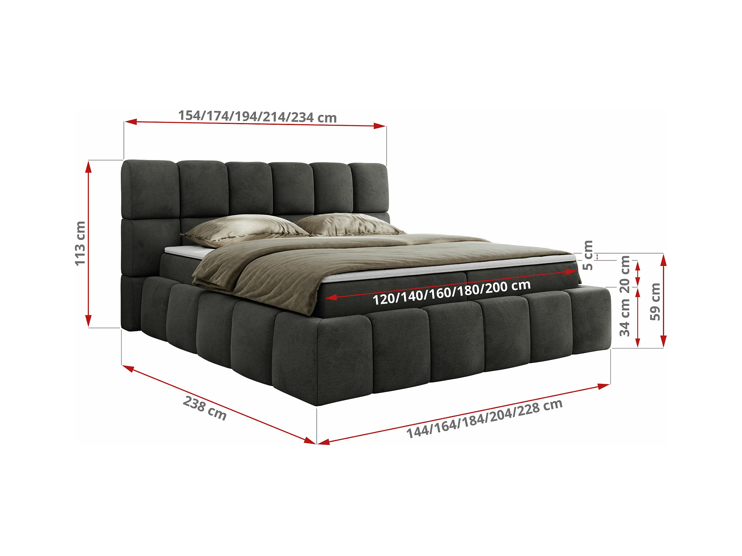 Boxspringbett NIRA - dekorativ kopfteil, Bettkästen und Multipocket-Matratze, Doppelbett für Schlafzimmer - 140x200 cm - H3 - Dunkelgrau Velvet