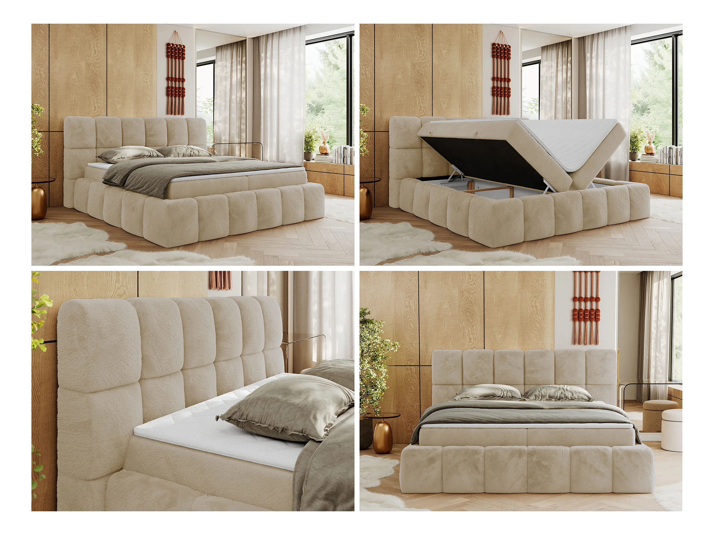 Boxspringbett NIRA - dekorativ kopfteil, Bettkästen und Multipocket-Matratze, Doppelbett für Schlafzimmer - 160x200 cm - H4 - Creme Plüsch