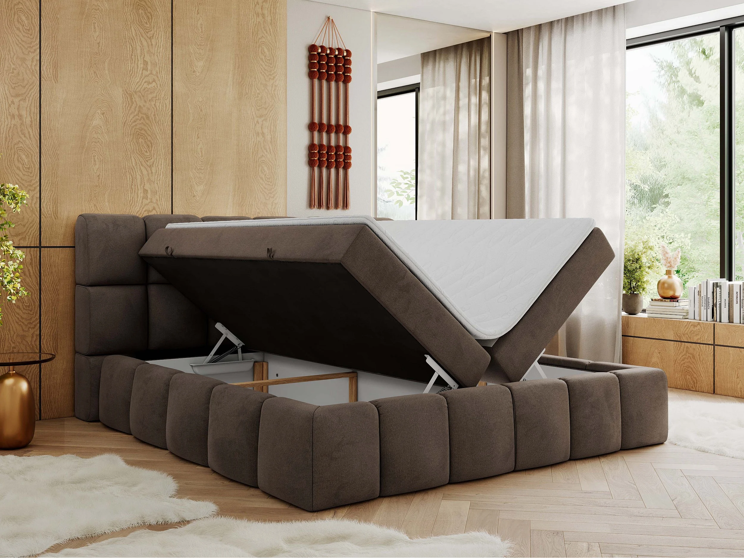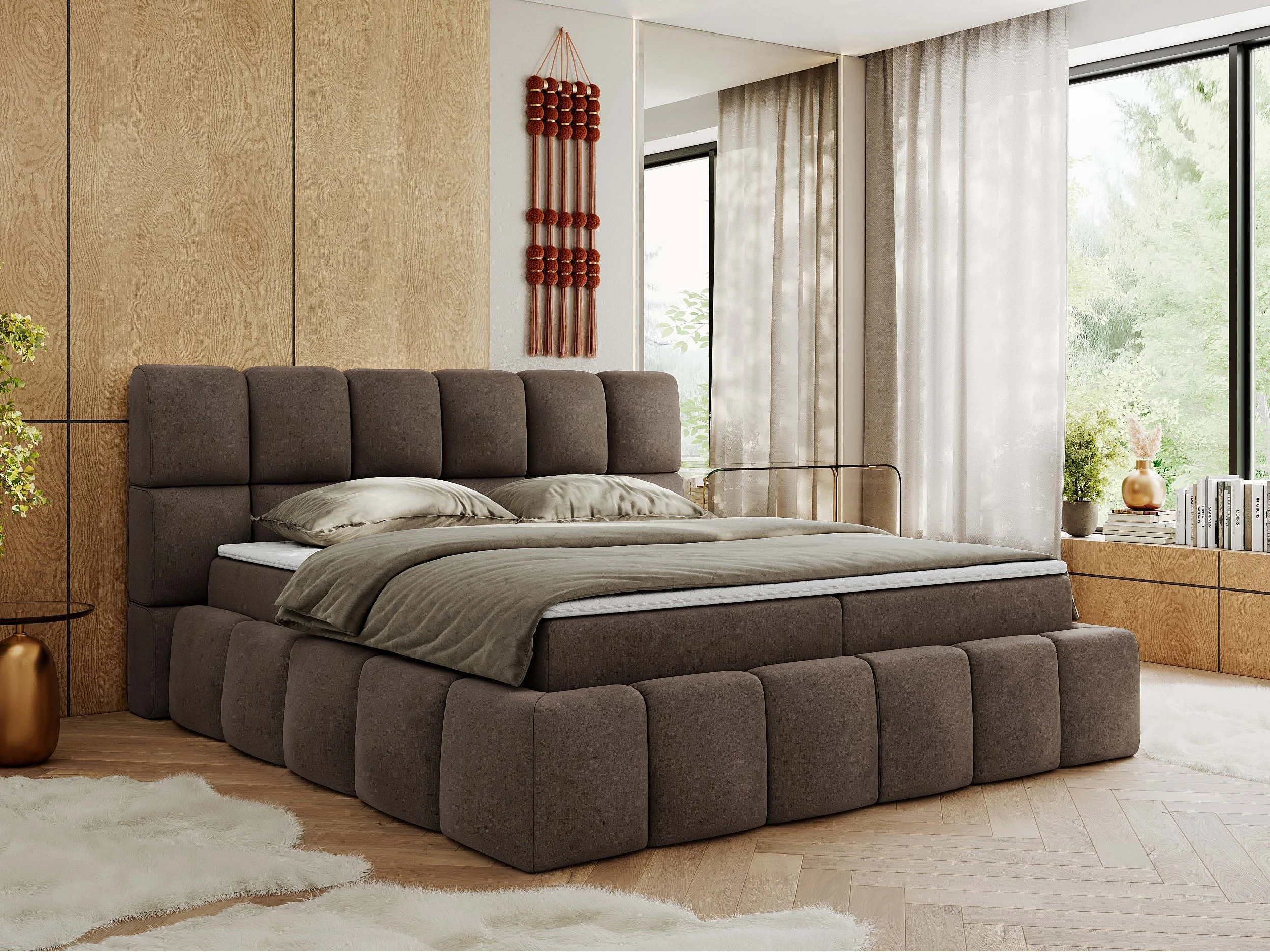 Boxspringbett NIRA - dekorativ kopfteil, Bettkästen und Multipocket-Matratze, Doppelbett für Schlafzimmer - 180x200 cm - H4 - Braun Velvet