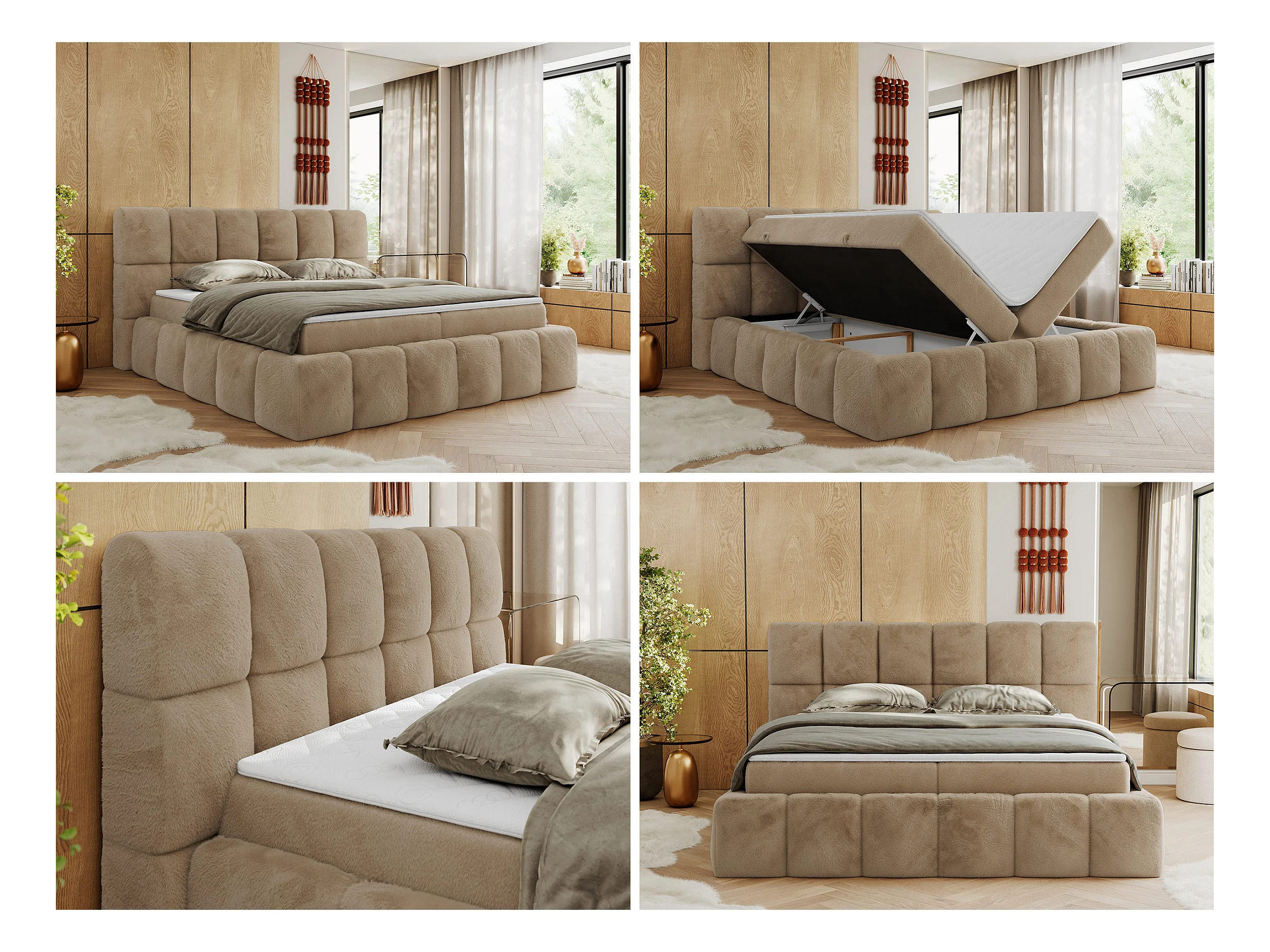 Boxspringbett NIRA - dekorativ kopfteil, Bettkästen und Multipocket-Matratze, Doppelbett für Schlafzimmer - 200x200 cm - H3 - Beige Plüsch