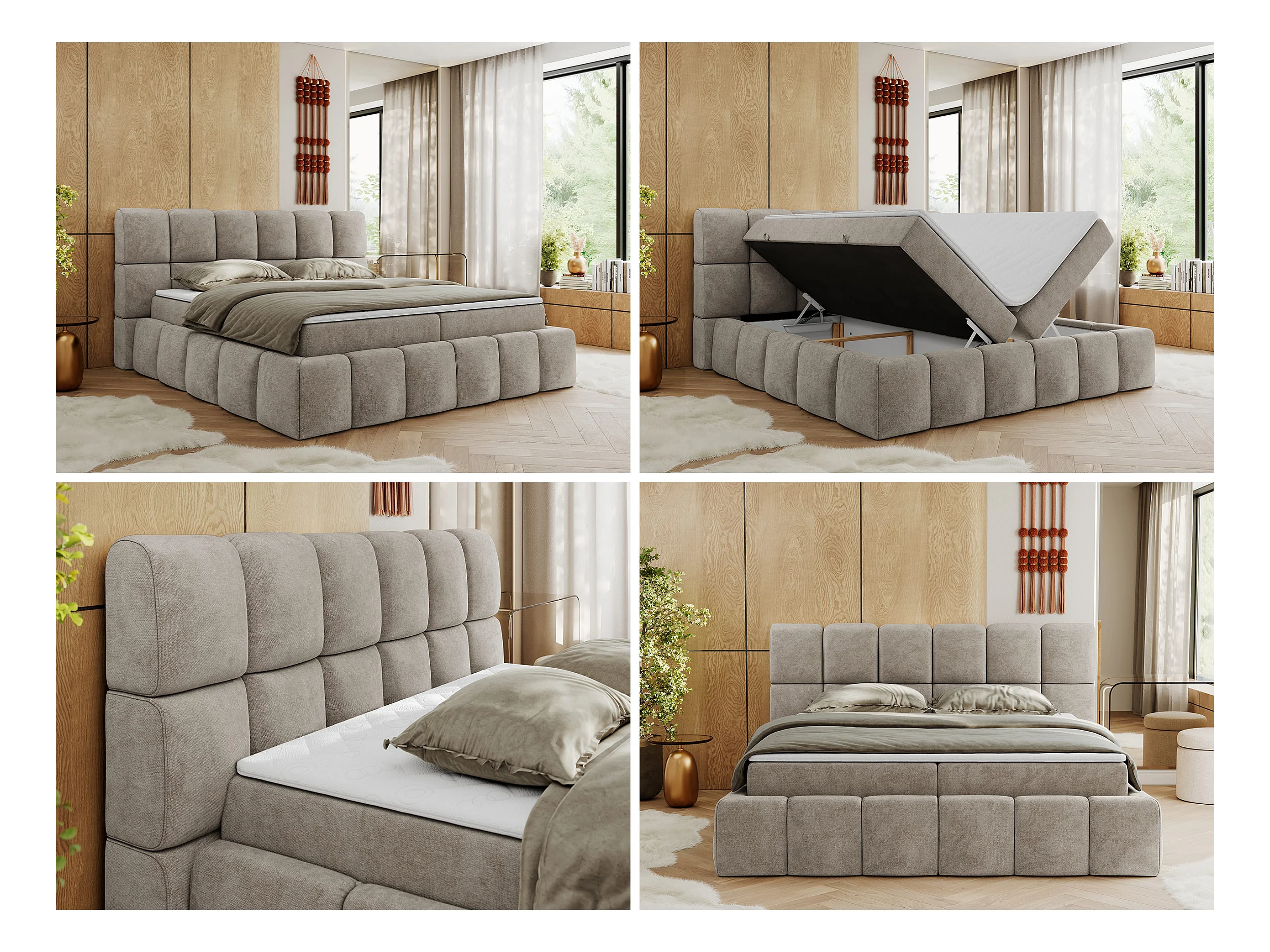 Boxspringbett NIRA - dekorativ kopfteil, Bettkästen und Multipocket-Matratze, Doppelbett für Schlafzimmer - 200x200 cm - H3 - Beige Strukture