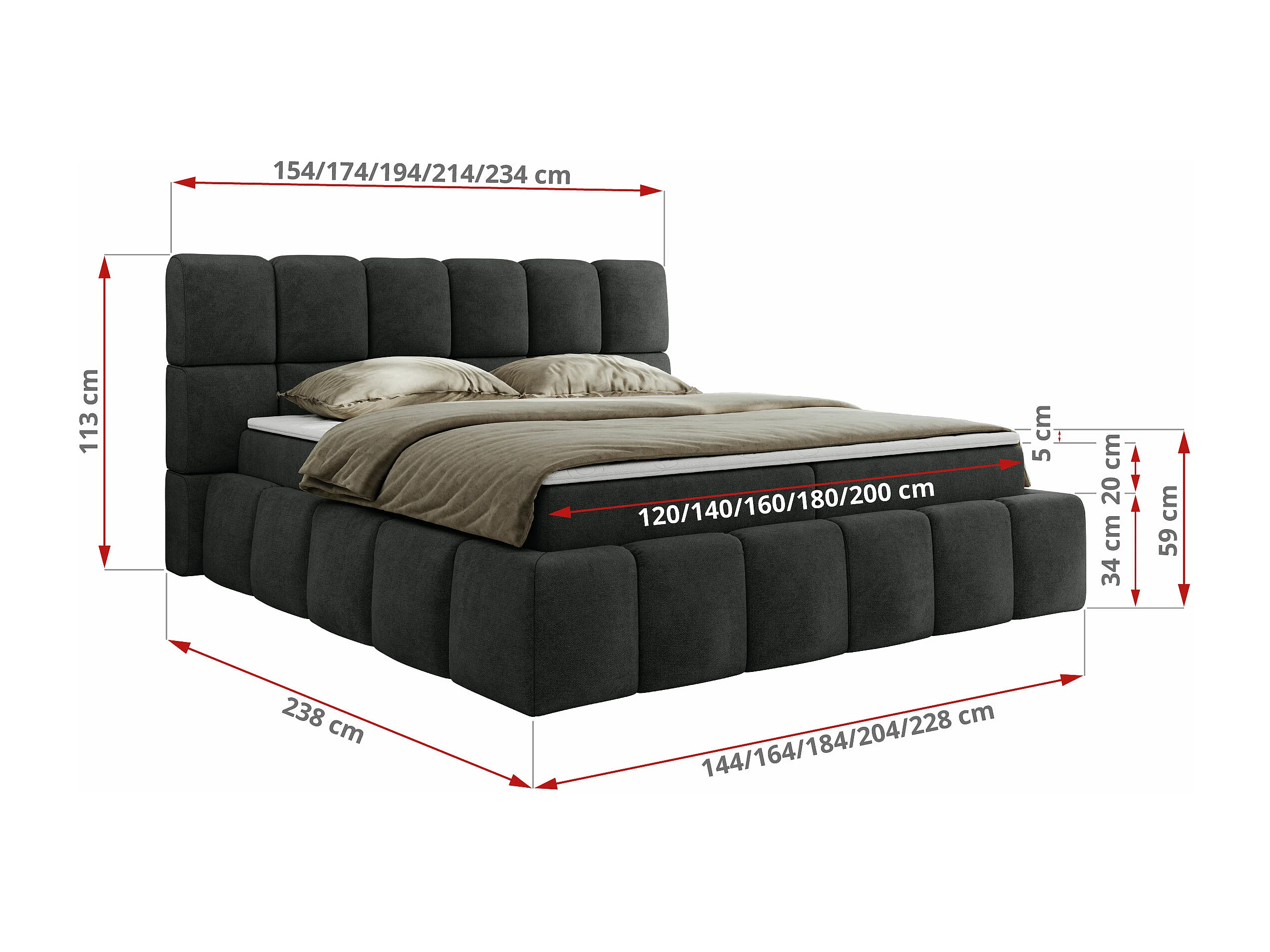 Boxspringbett NIRA - dekorativ kopfteil, Bettkästen und Multipocket-Matratze, Doppelbett für Schlafzimmer - 200x200 cm - H4 - Dunkelgrau Strukture