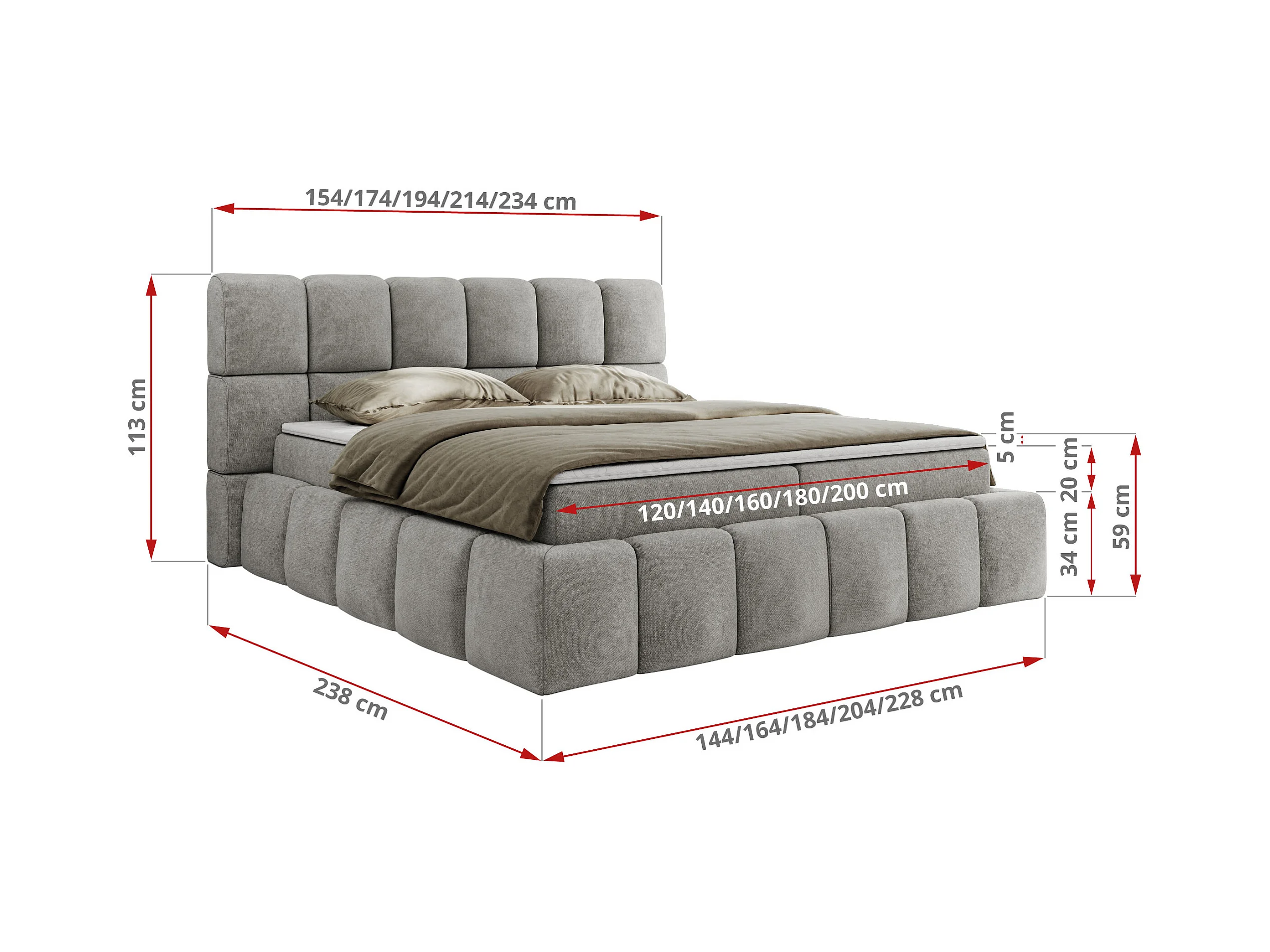 Boxspringbett NIRA - dekorativ kopfteil, Bettkästen und Multipocket-Matratze, Doppelbett für Schlafzimmer - 200x200 cm - H4 - Hellgrau Strukture