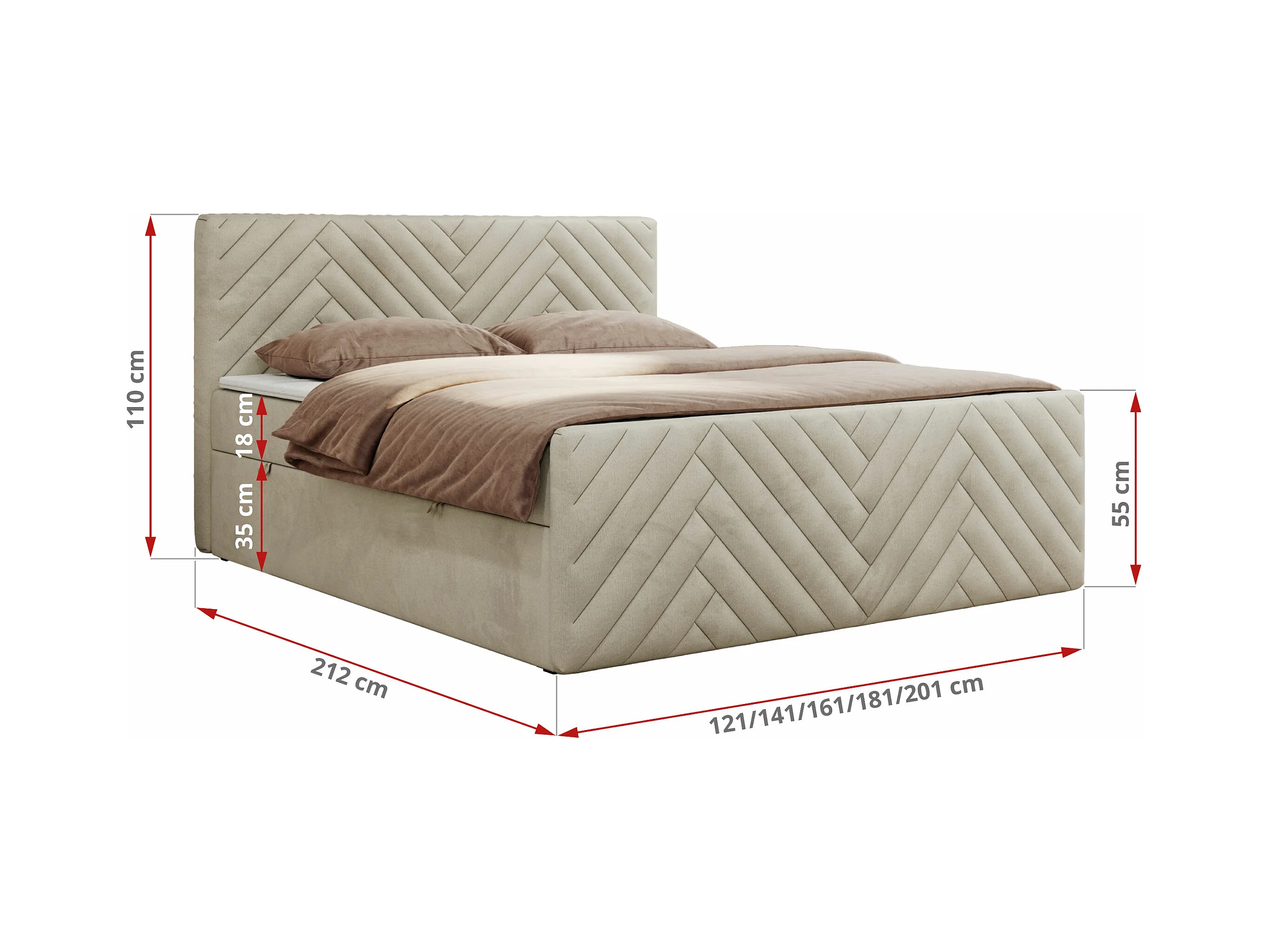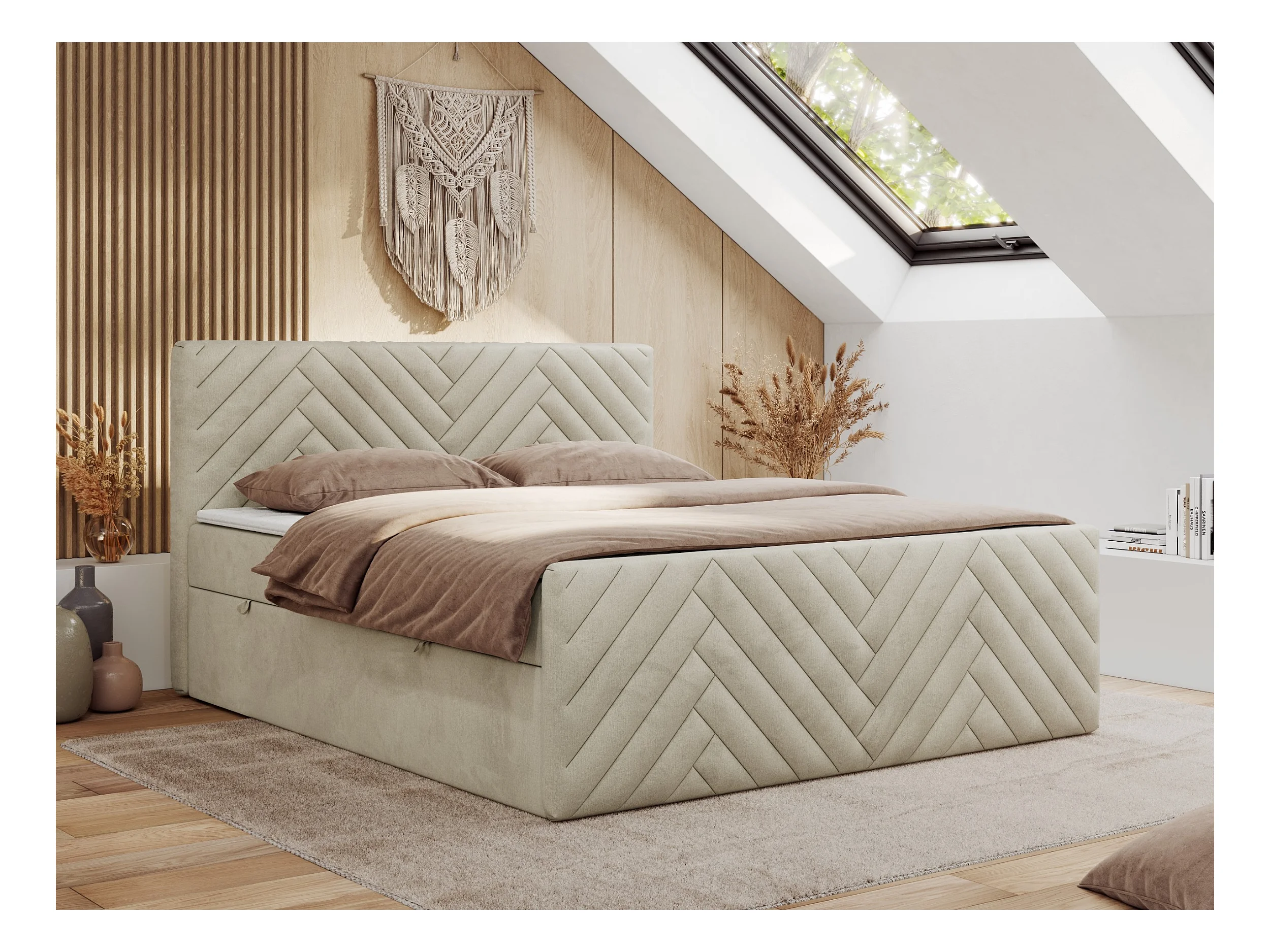 Boxspringbett PARIS DUO - Polsterbett mit genähtem Kopfteil und Frontplatte, Doppelbett, zwei Bettkästen - 140x200 cm - H3 - Beige Velvet