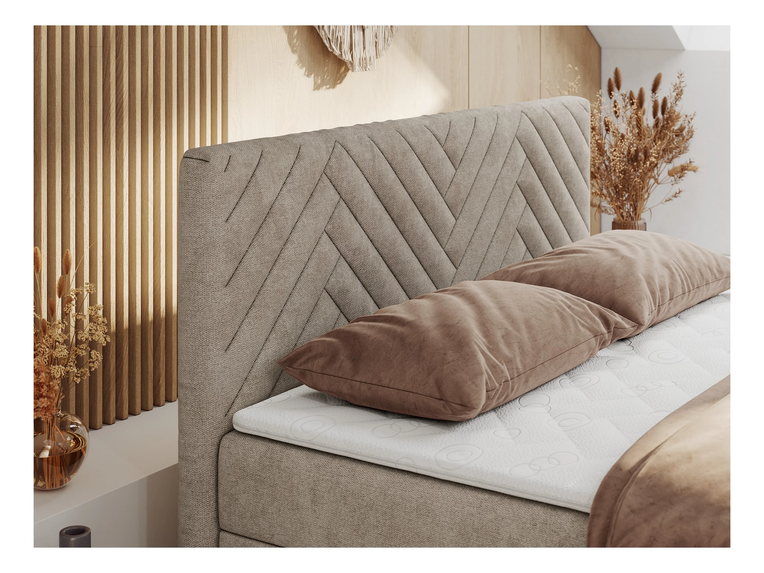 Boxspringbett PARIS DUO - Polsterbett mit genähtem Kopfteil und Frontplatte, Doppelbett, zwei Bettkästen - 140x200 cm - H4 - Beige Strukture