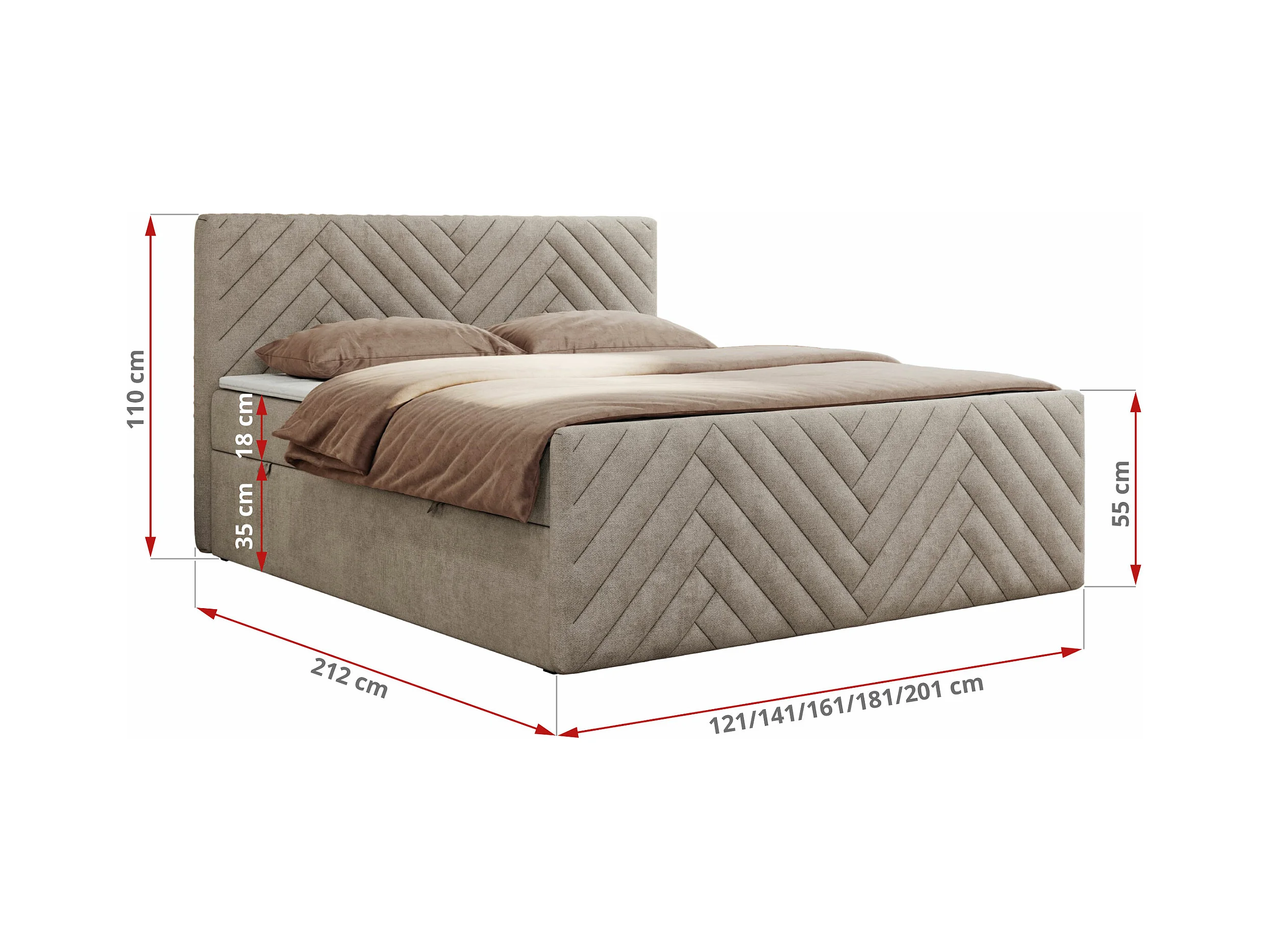 Boxspringbett PARIS DUO - Polsterbett mit genähtem Kopfteil und Frontplatte, Doppelbett, zwei Bettkästen - 160x200 cm - H3 - Beige Strukture