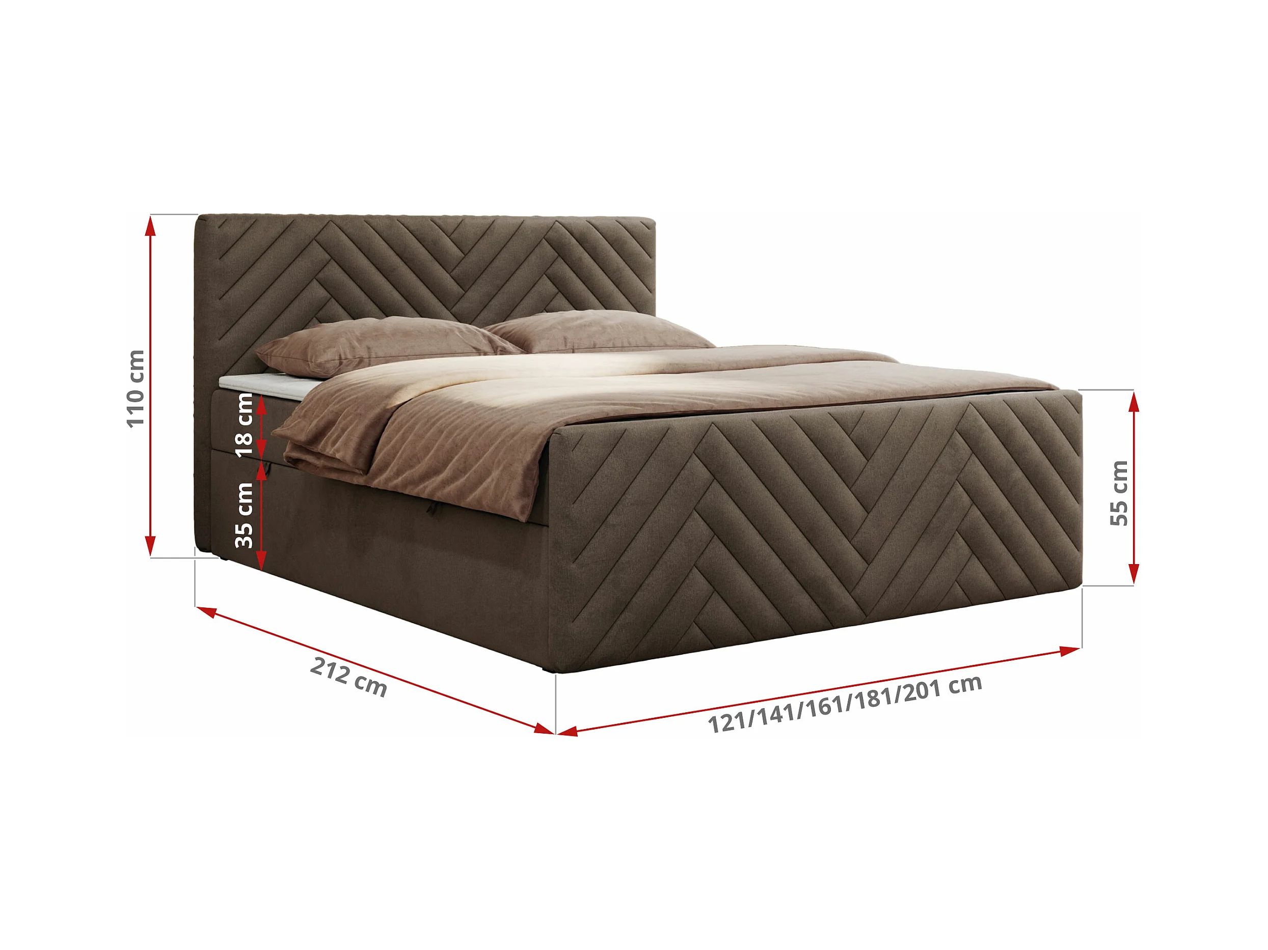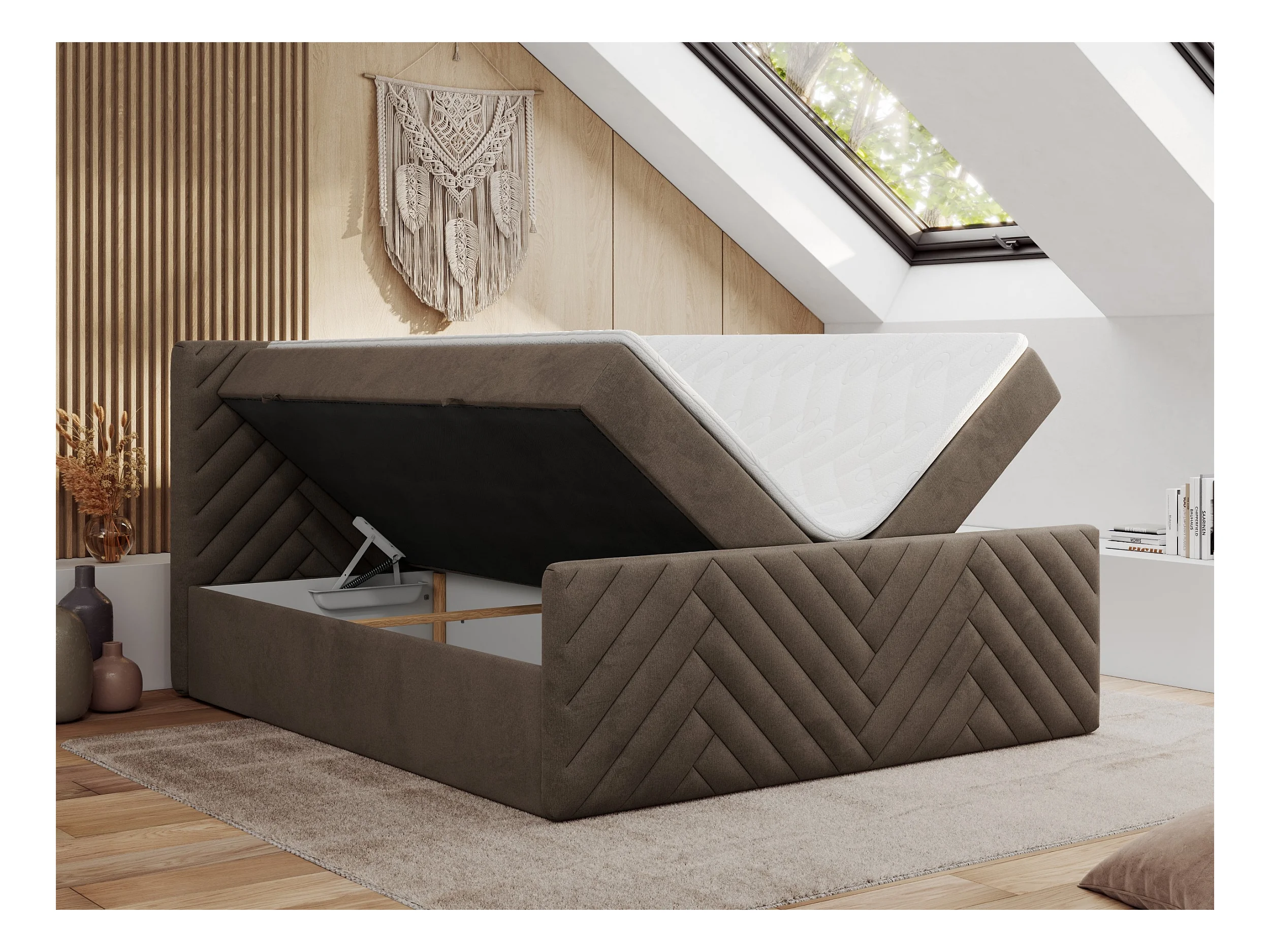 Boxspringbett PARIS DUO - Polsterbett mit genähtem Kopfteil und Frontplatte, Doppelbett, zwei Bettkästen - 160x200 cm - H3 - Braun Velvet