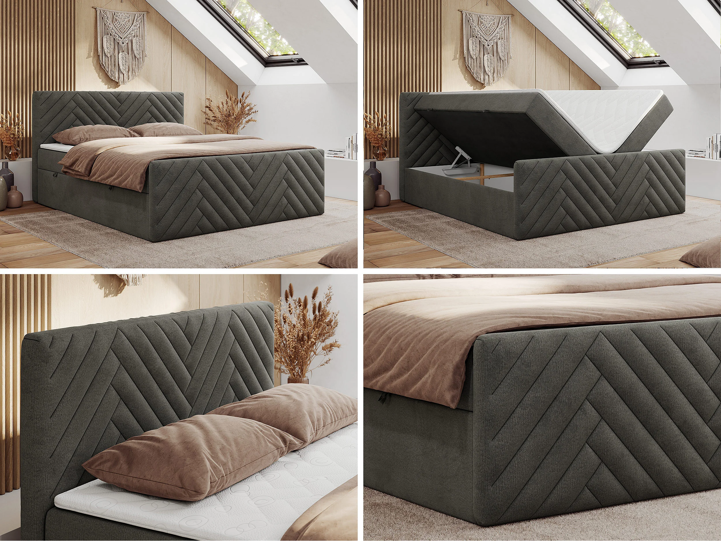 Boxspringbett PARIS DUO - Polsterbett mit genähtem Kopfteil und Frontplatte, Doppelbett, zwei Bettkästen - 160x200 cm - H3 - Dunkelgrau Velvet