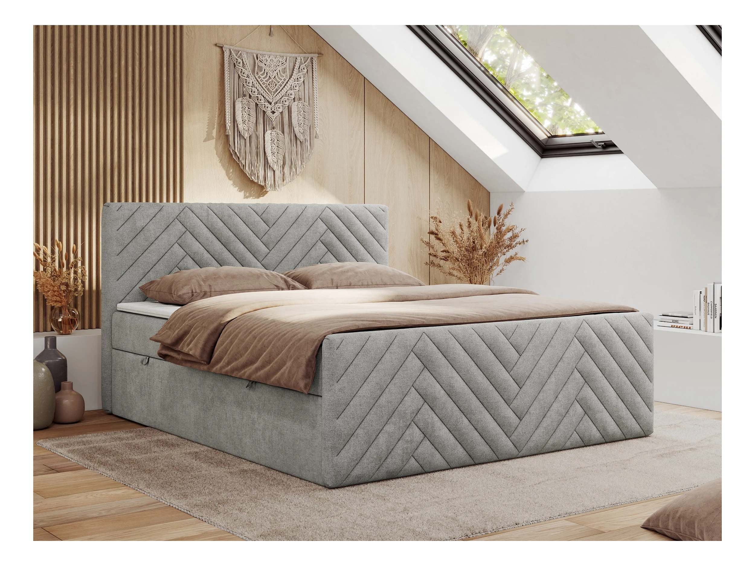 Boxspringbett PARIS DUO - Polsterbett mit genähtem Kopfteil und Frontplatte, Doppelbett, zwei Bettkästen - 160x200 cm - H3 - Hellgrau Strukture