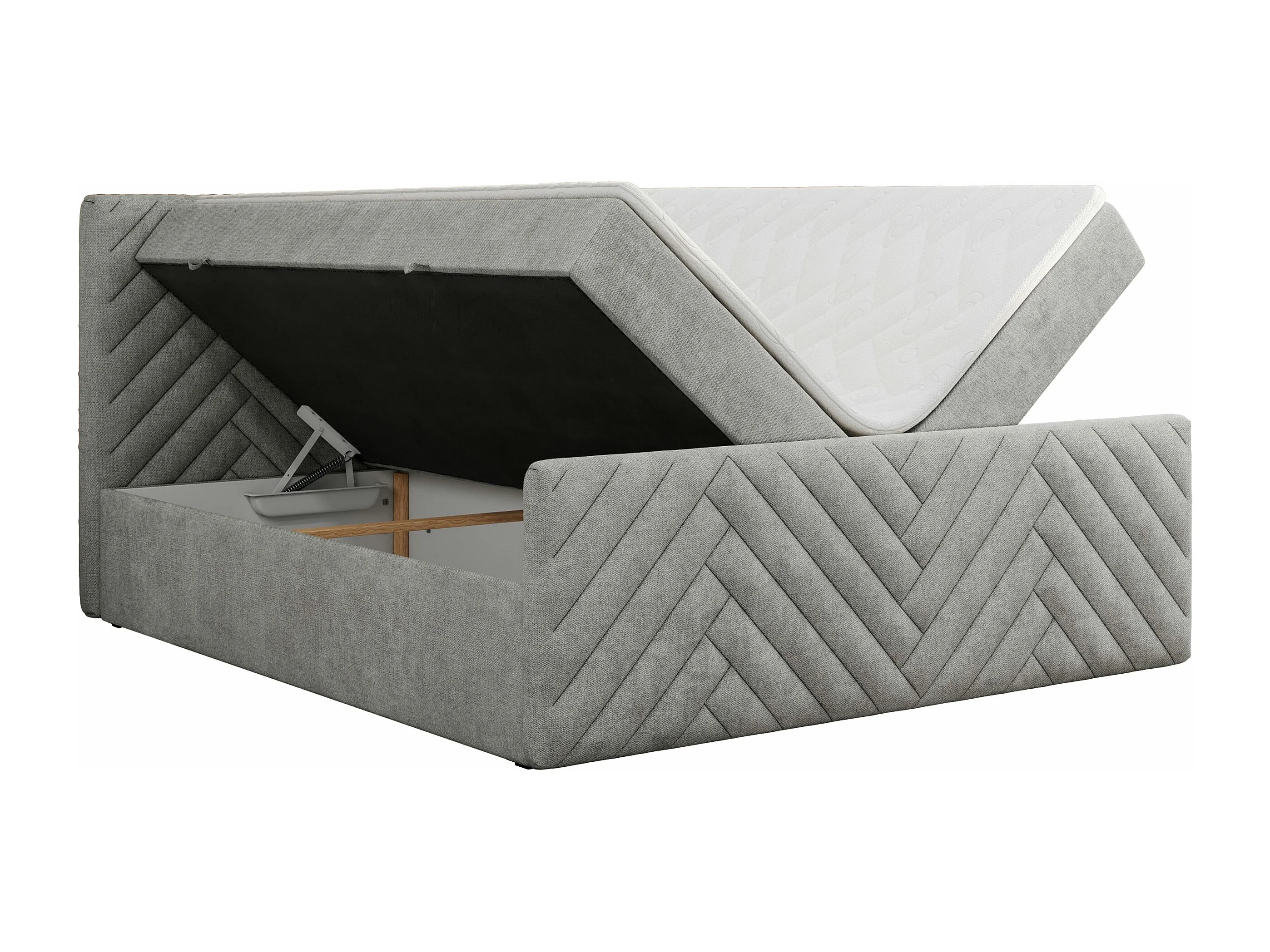 Boxspringbett PARIS DUO - Polsterbett mit genähtem Kopfteil und Frontplatte, Doppelbett, zwei Bettkästen - 160x200 cm - H4 - Hellgrau Strukture