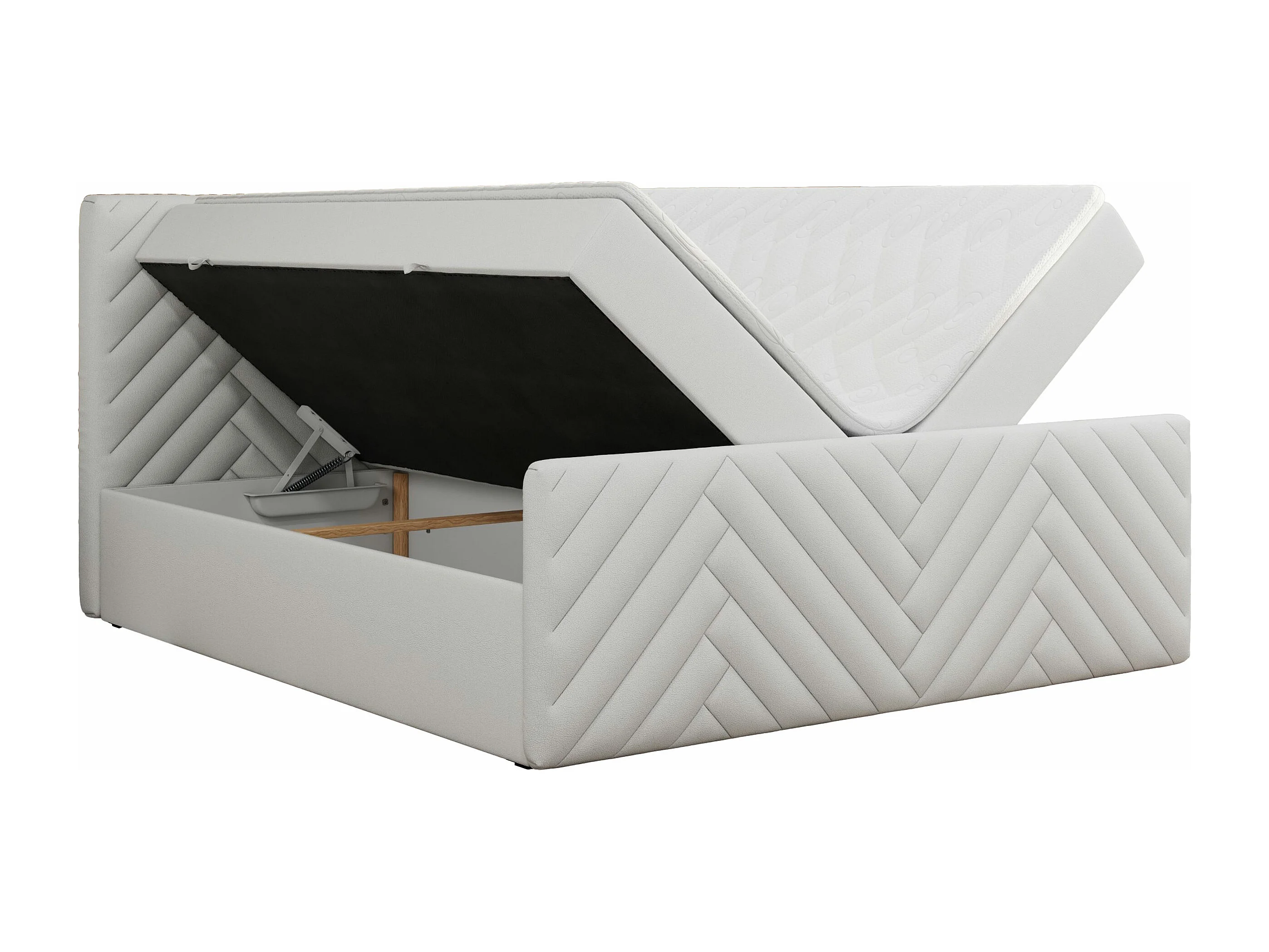 Boxspringbett PARIS DUO - Polsterbett mit genähtem Kopfteil und Frontplatte, Doppelbett, zwei Bettkästen - 160x200 cm - H4 - Weiß Kunstleder