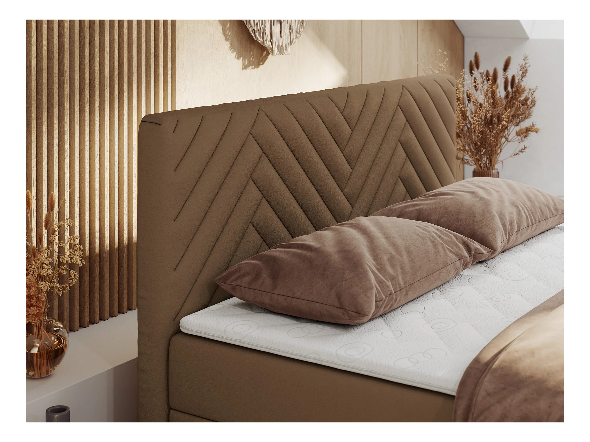 Boxspringbett PARIS DUO - Polsterbett mit genähtem Kopfteil und Frontplatte, Doppelbett, zwei Bettkästen - 200x200 cm - H4 - Braun Kunstleder
