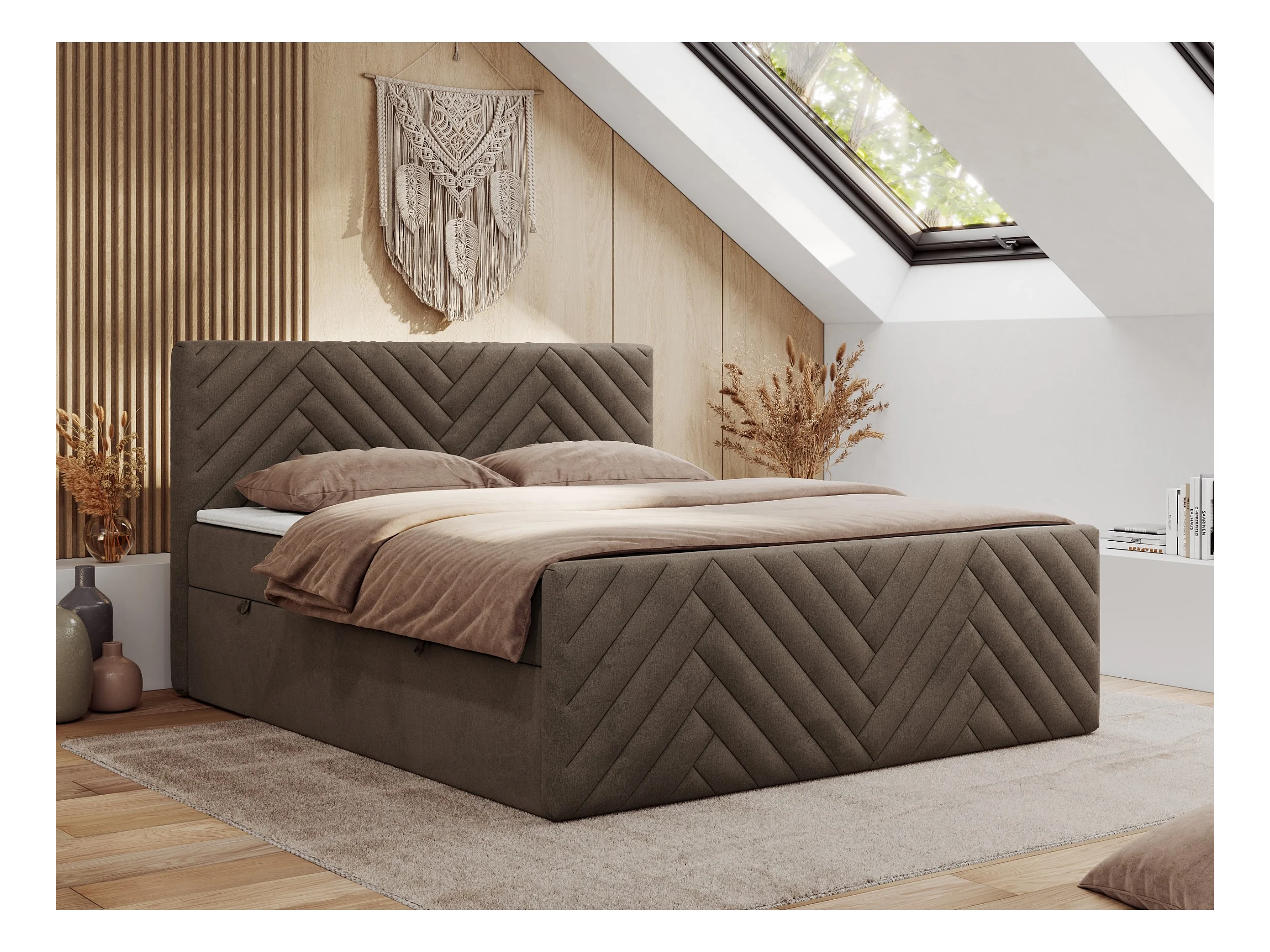 Boxspringbett PARIS DUO - Polsterbett mit genähtem Kopfteil und Frontplatte, Doppelbett, zwei Bettkästen - 200x200 cm - H4 - Braun Velvet