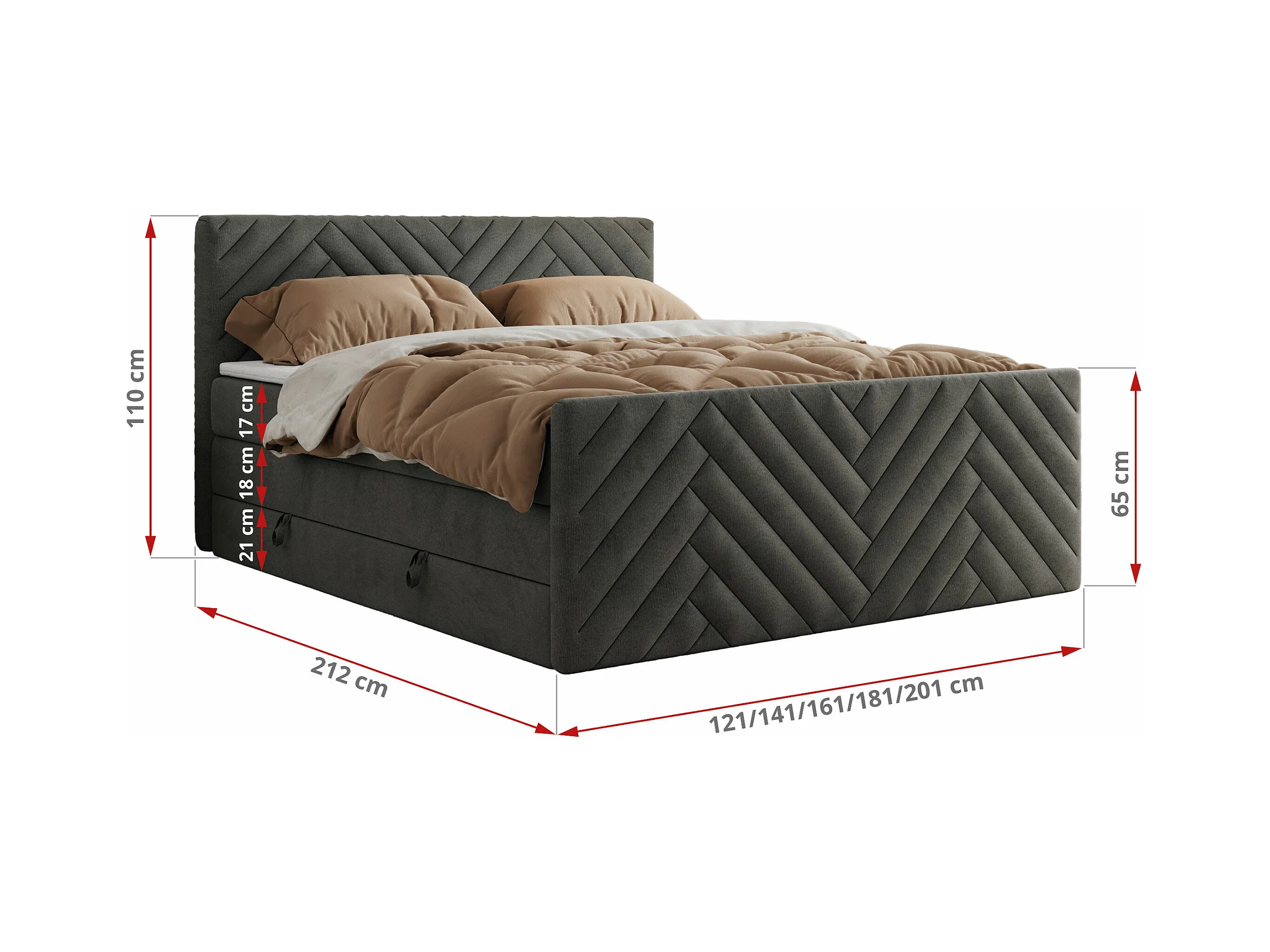 Boxspringbett PARIS KING DUO - dekorative Kopfstütze und Front, zwei Multipocket-Matratze mit Topper - 120x200 cm - H4 - Dunkelgrau Velvet
