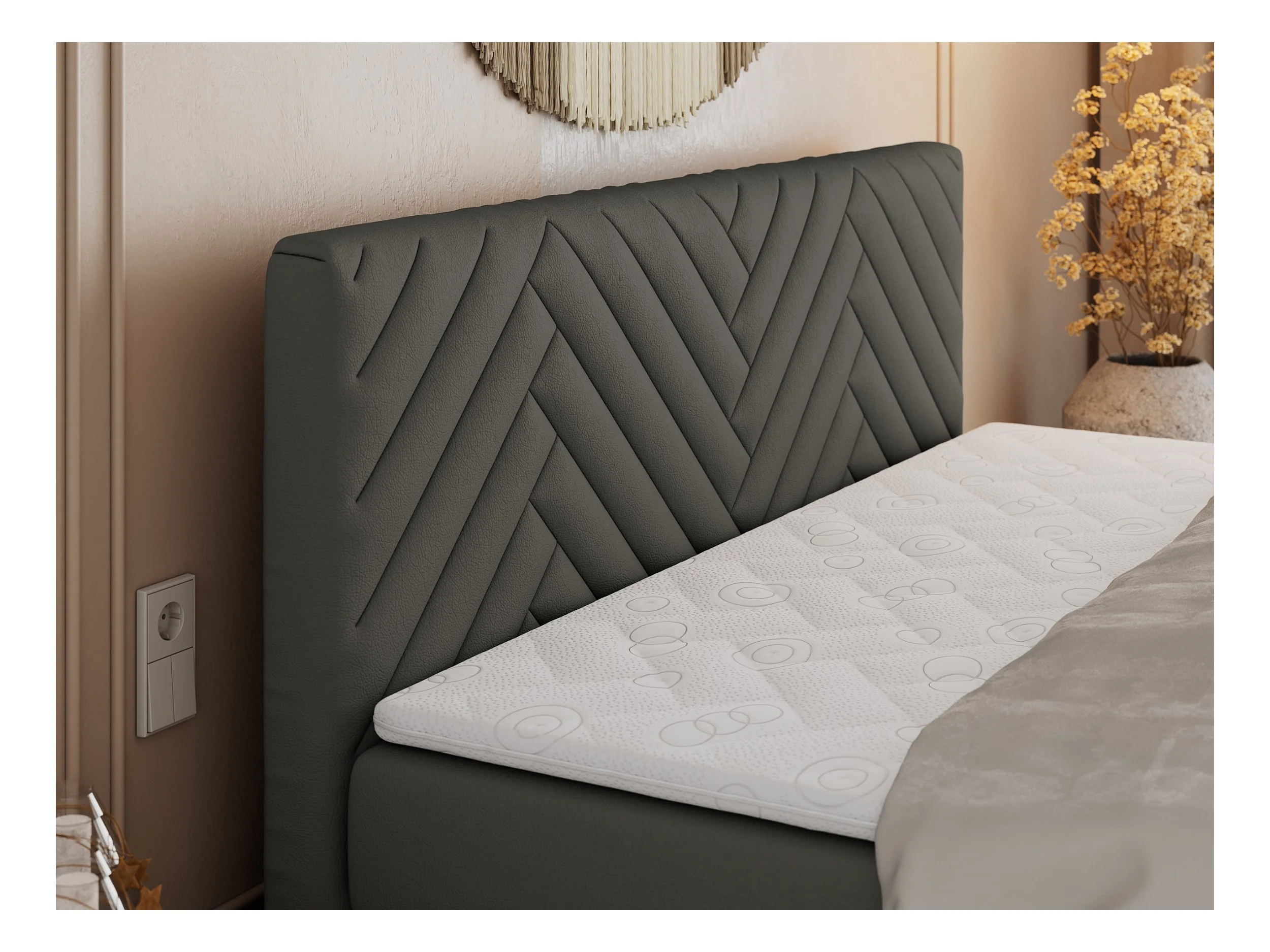 Boxspringbett PARIS KING DUO - dekorative Kopfstütze und Front, zwei Multipocket-Matratze mit Topper - 120x200 cm - H4 - Grau Kunstleder