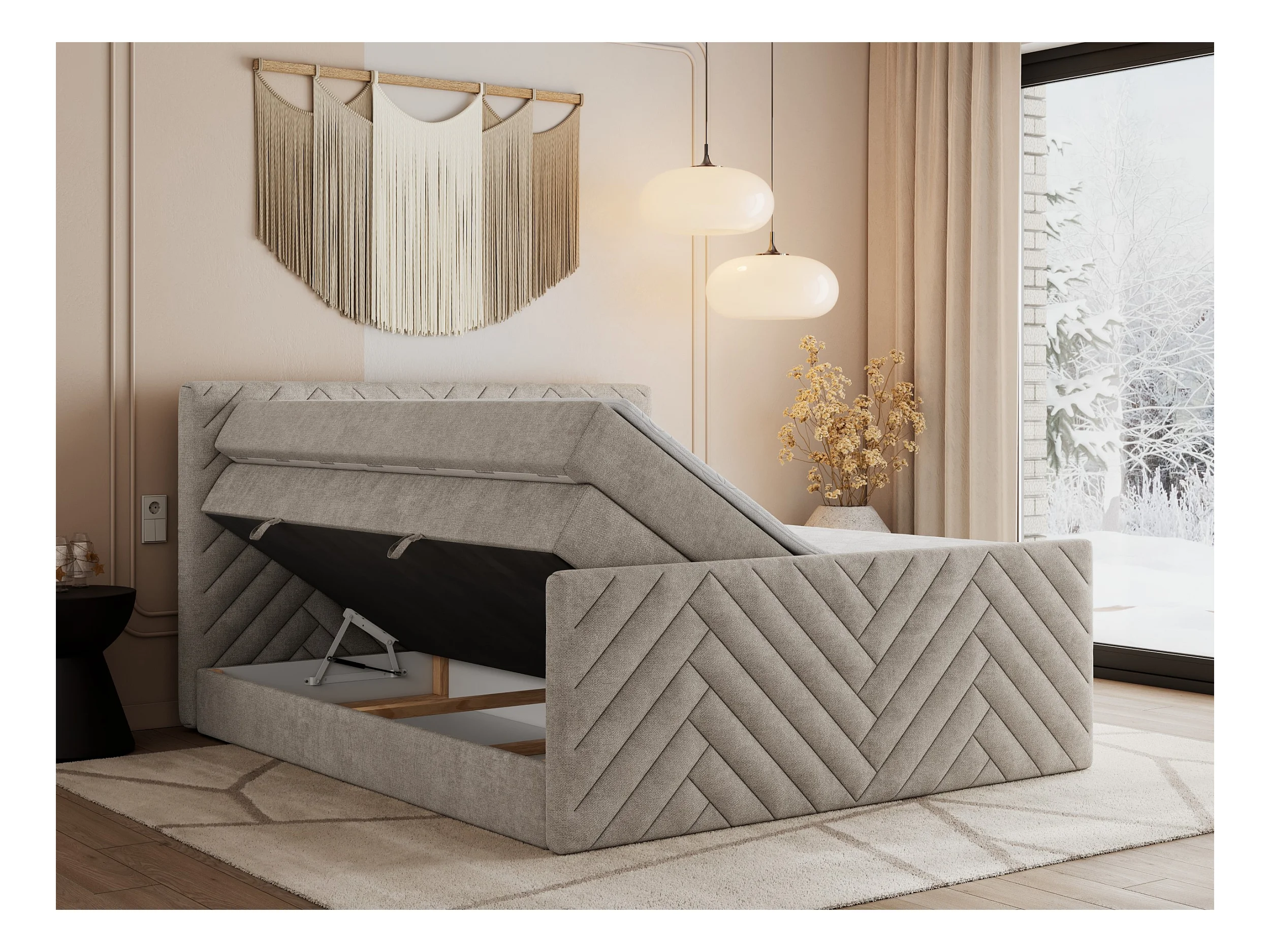 Boxspringbett PARIS KING DUO - dekorative Kopfstütze und Front, zwei Multipocket-Matratze mit Topper - 140x200 cm - H4 - Beige Strukture