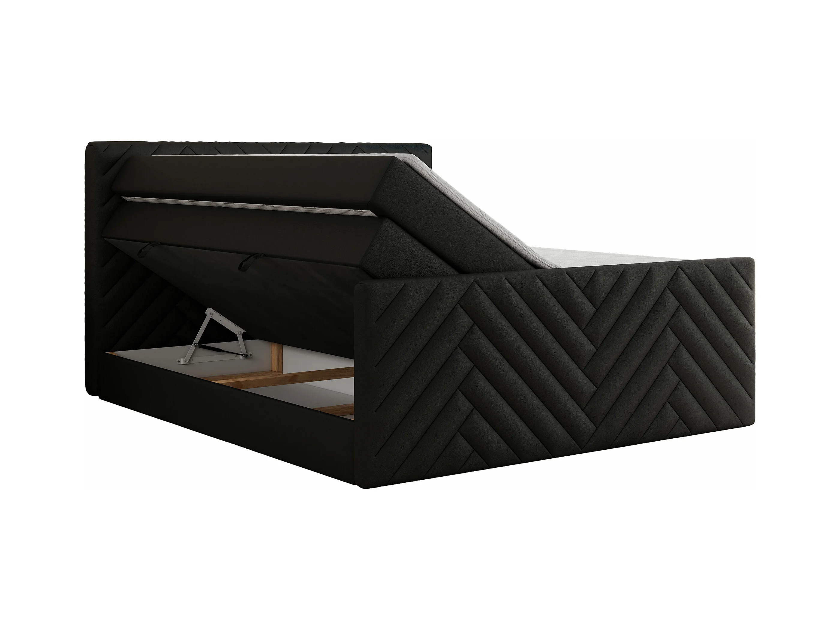 Boxspringbett PARIS KING DUO - dekorative Kopfstütze und Front, zwei Multipocket-Matratze mit Topper - 160x200 cm - H3 - Schwarz Kunstleder