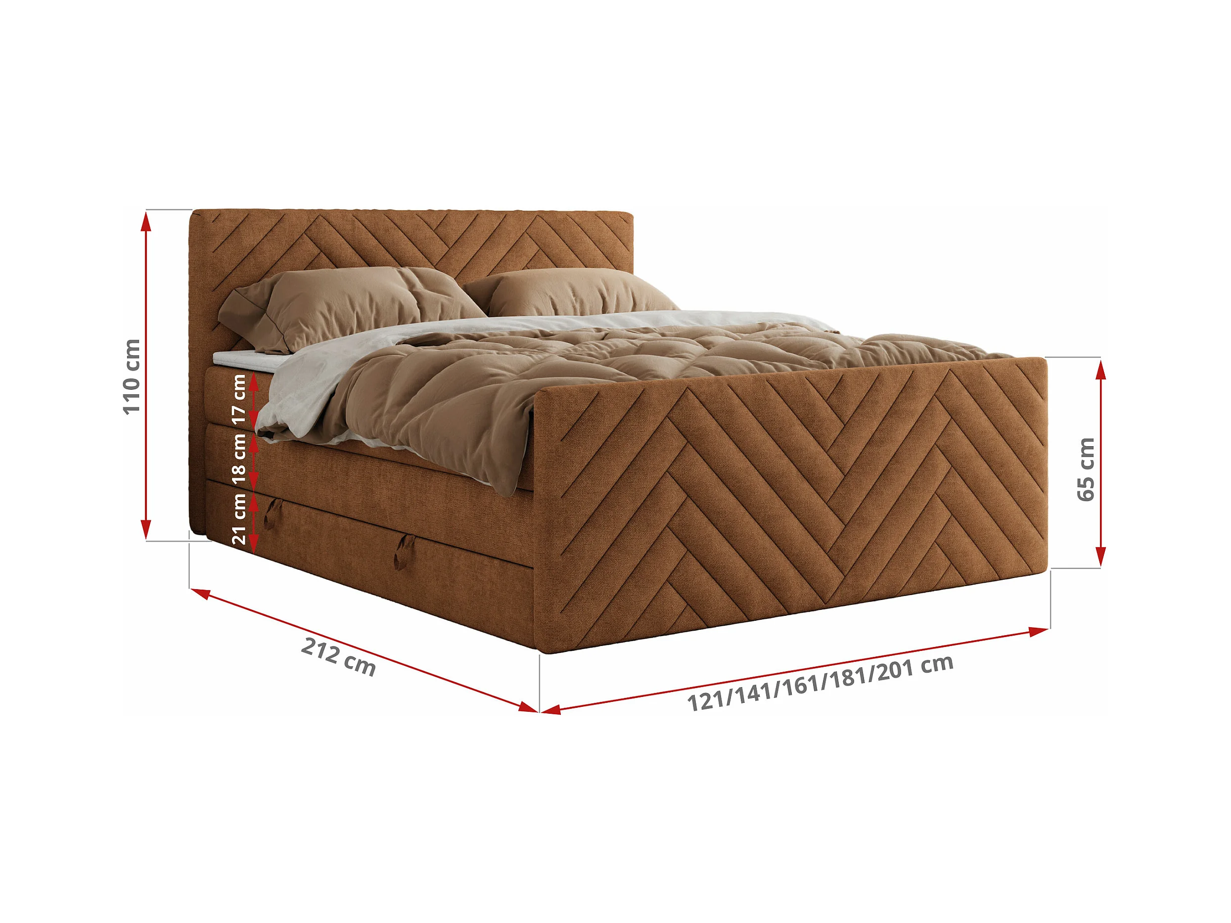 Boxspringbett PARIS KING DUO - dekorative Kopfstütze und Front, zwei Multipocket-Matratze mit Topper - 180x200 cm - H3 - Orange Strukture