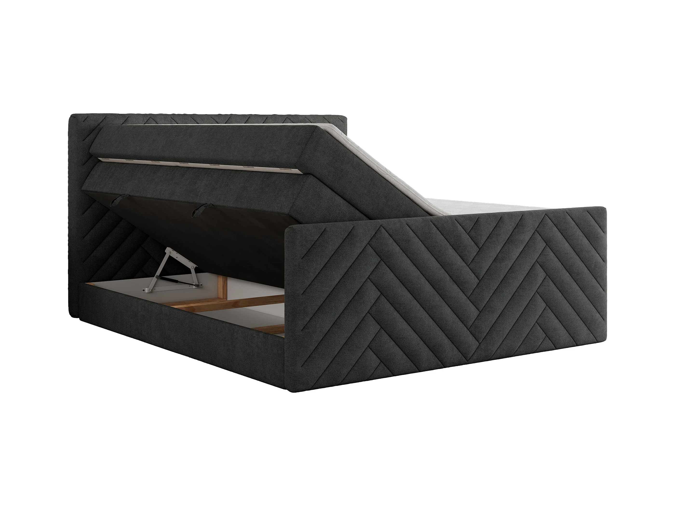 Boxspringbett PARIS KING DUO - dekorative Kopfstütze und Front, zwei Multipocket-Matratze mit Topper - 200x200 cm - H3 - Dunkelgrau Strukture